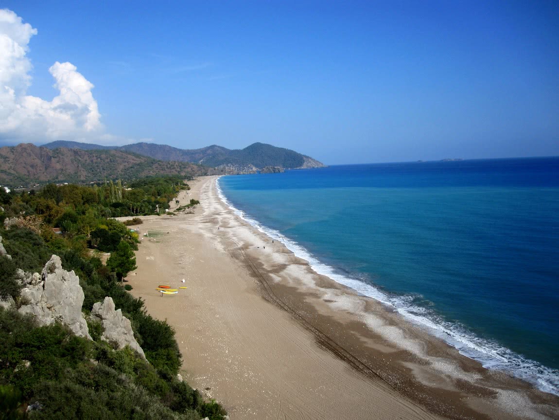 Турция, Сиде, пляж в вечерних лучах солнца: