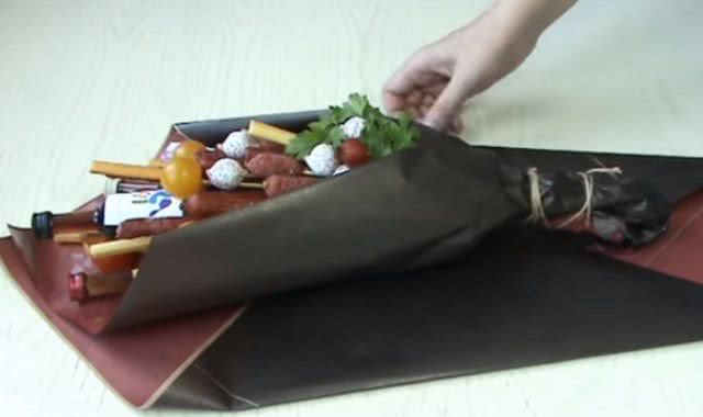 Букет для мужчины из продуктов и бутылки алкоголя своими руками