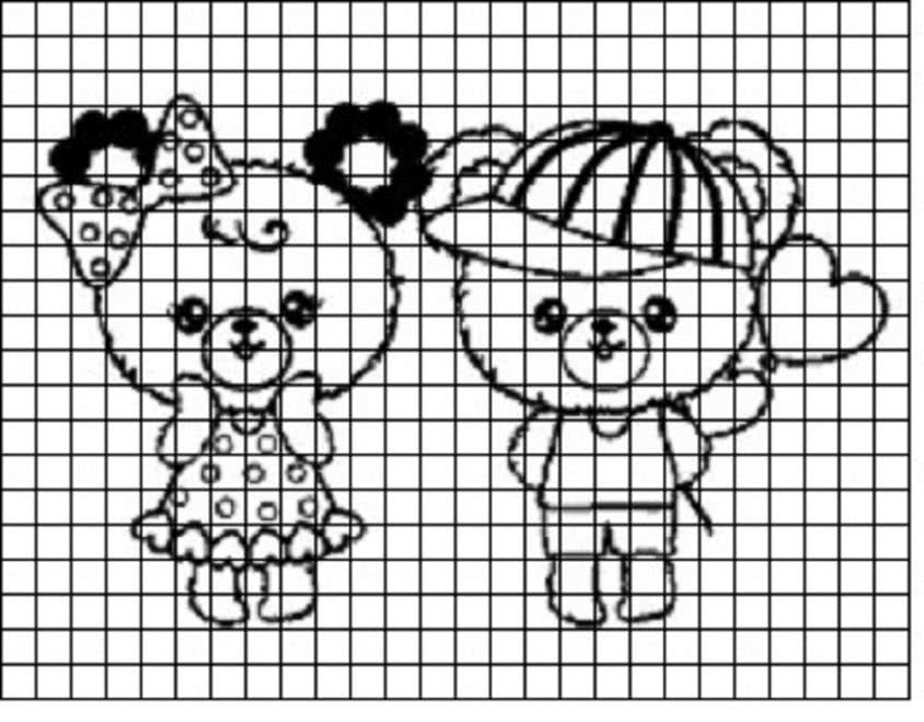 Мишка, который держит сердце, украсит странички дневника девочек, а клеточки помогут его нарисовать.