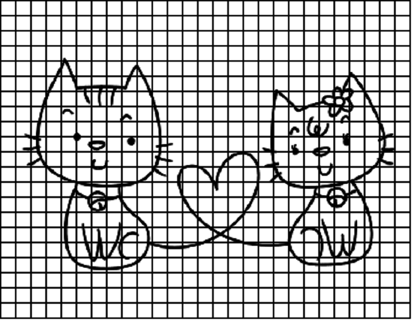 Легче всего рисовать по клеточкам. Конечно, в том случае, если у вас есть имеется расчерченный рисунок. Вот такие милые котята могут появиться в дневнике, если срисовать их по клеточкам.