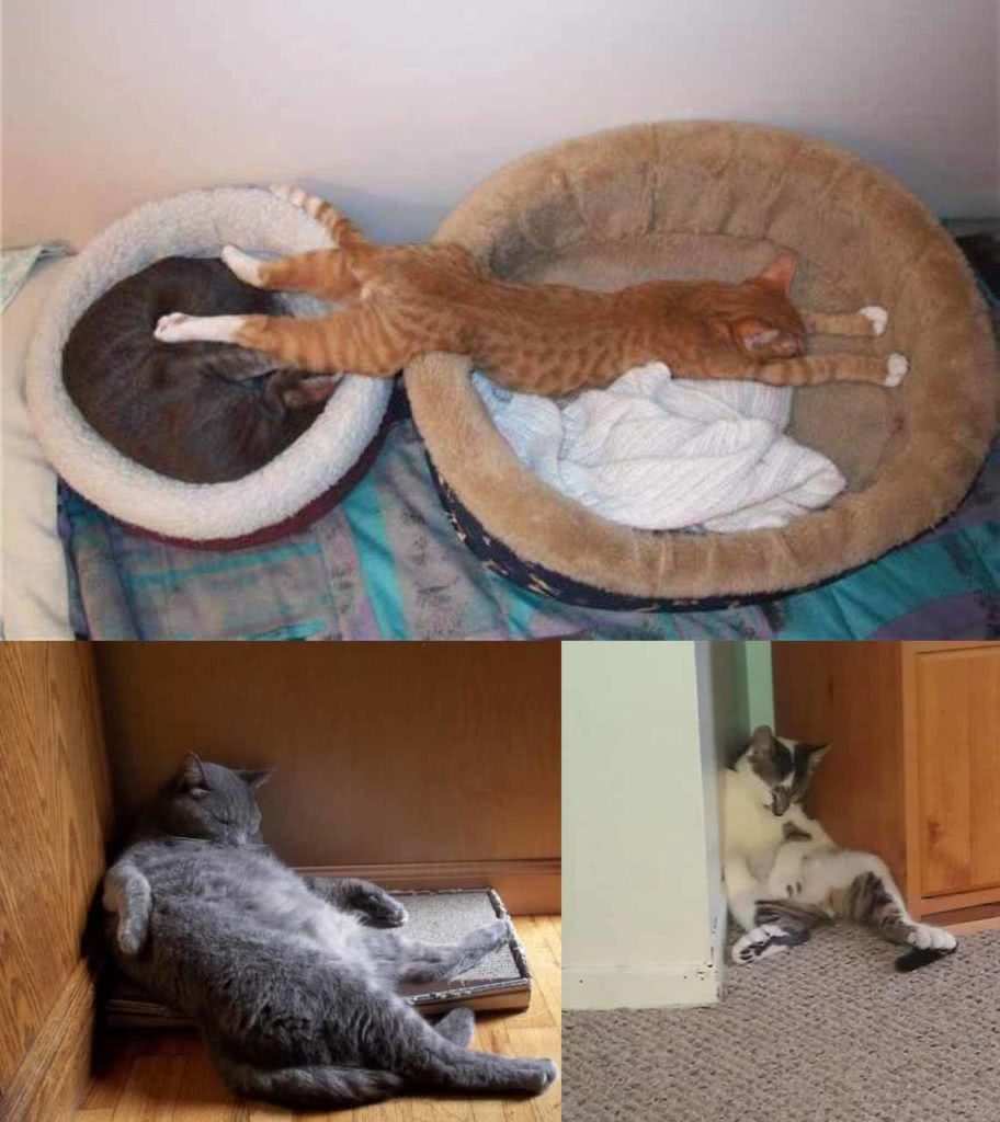 Рассматривать смешные фото спящих кошек можно бесконечно — так же, как и смотреть на огонь или бегущую воду. Несмотря на кажущуюся экзотичность выбора спальных мест, эти кошки спят не абы где — большинство из них выбирает для сна тёплые места, находящиеся на возвышенности: оттуда проще держать свои владения под контролем и демонстрировать окружающим своё превосходство.