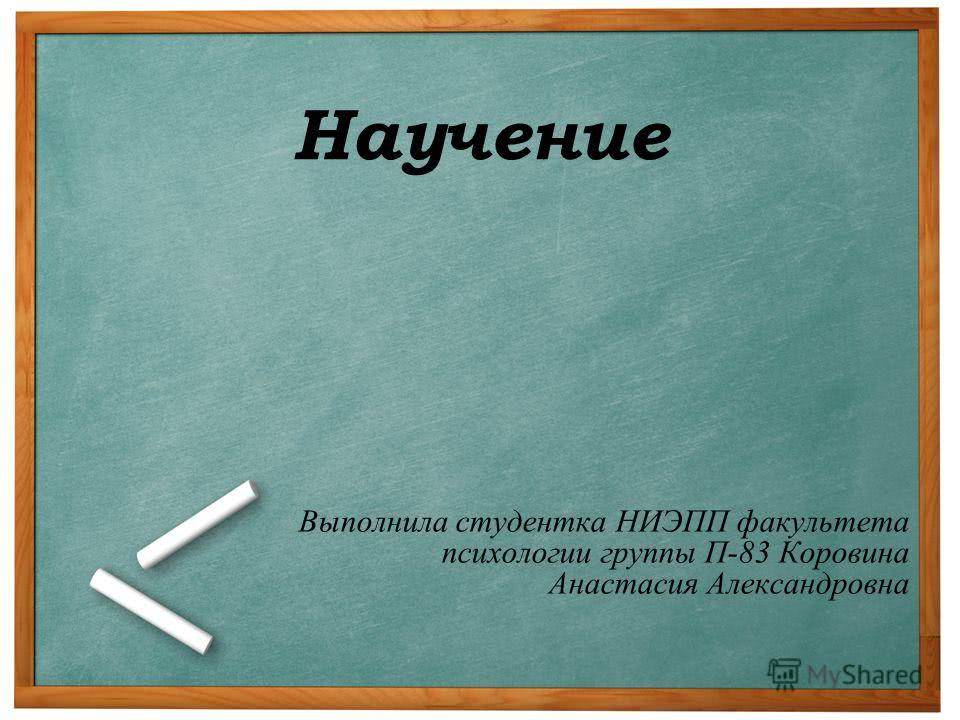 Научение Выполнила студентка НИЭПП факультета психологии группы П-83 Коровина Анастасия Александровна
