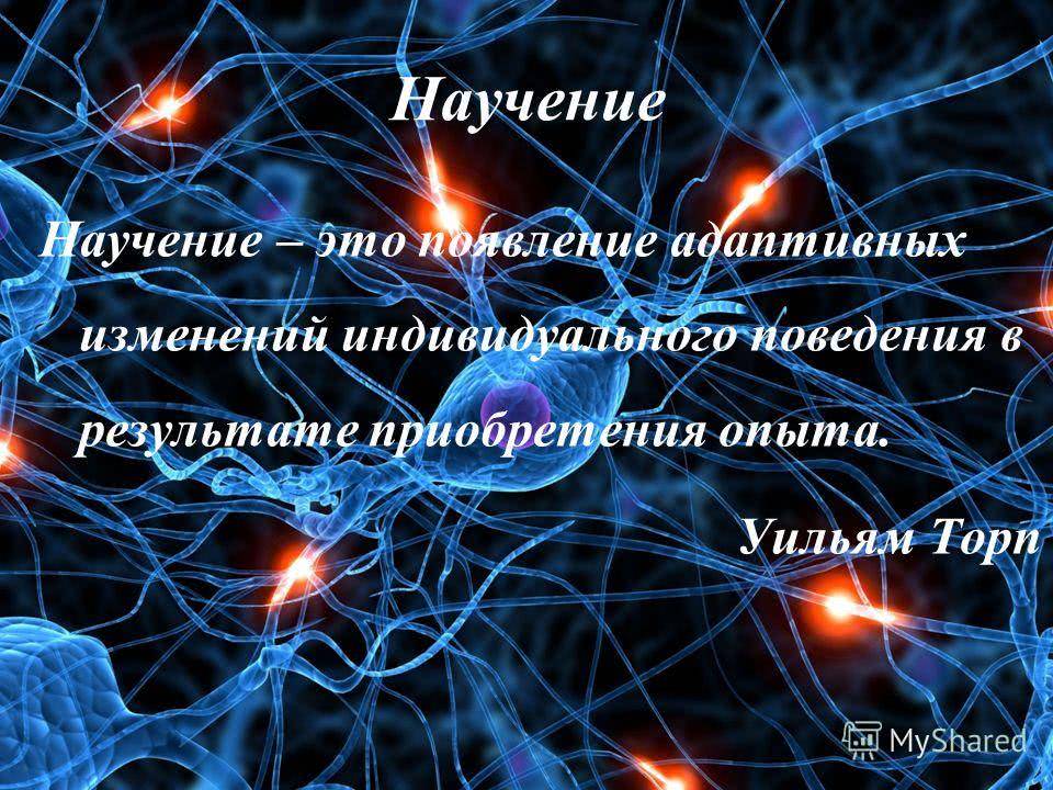 Научение Научение – это появление адаптивных изменений индивидуального поведения в результате приобретения опыта. Уильям Торп