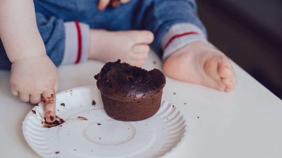 Ребенок ест кекс.