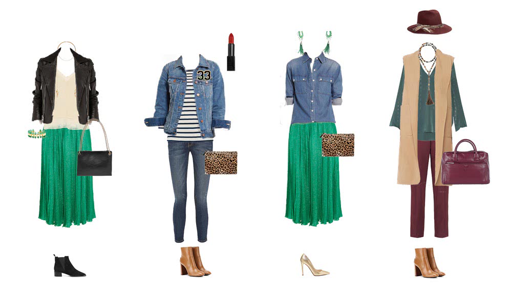 Гардероб может сочетать разные оттенки одного цвета в одежде. Приобретать лучше универсальные изделия, они гармонируют друг с другом независимо от стилистики. Капсульный гардероб можно составить из одежды для всех случаев жизни. Он позволяет сэкономить деньги, женщине не нужно приобретать много одежды.