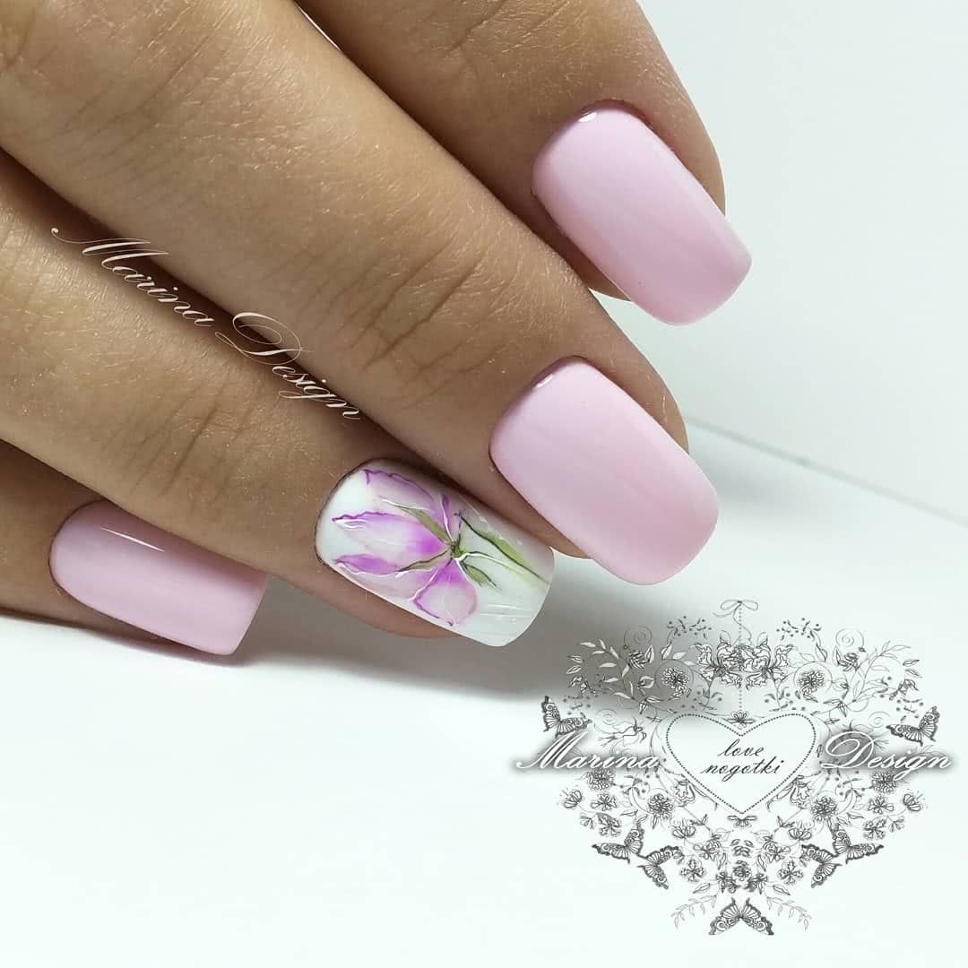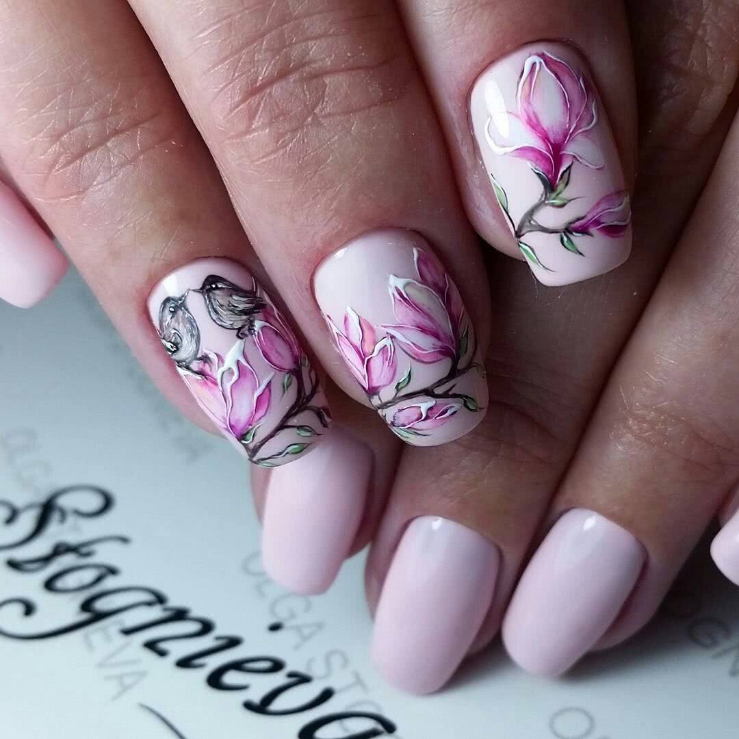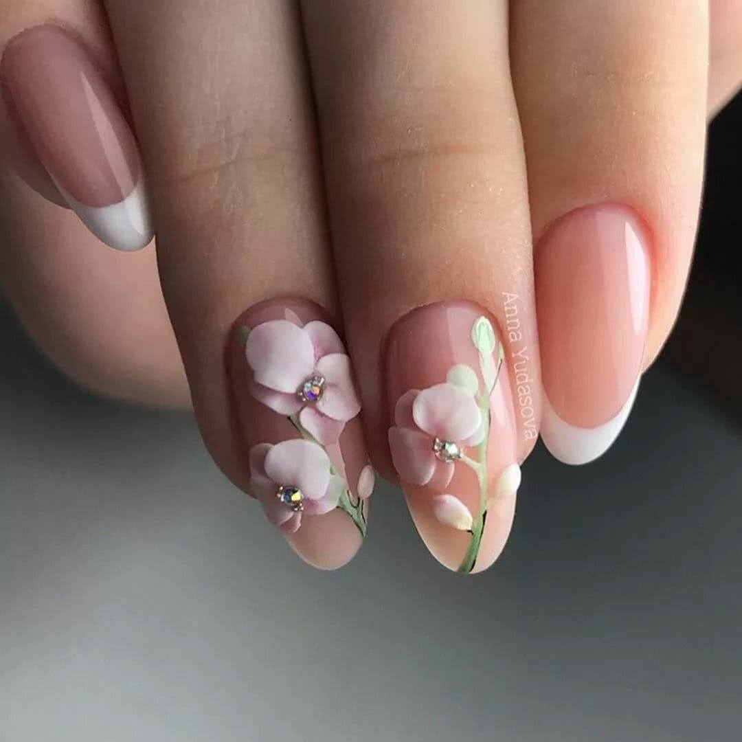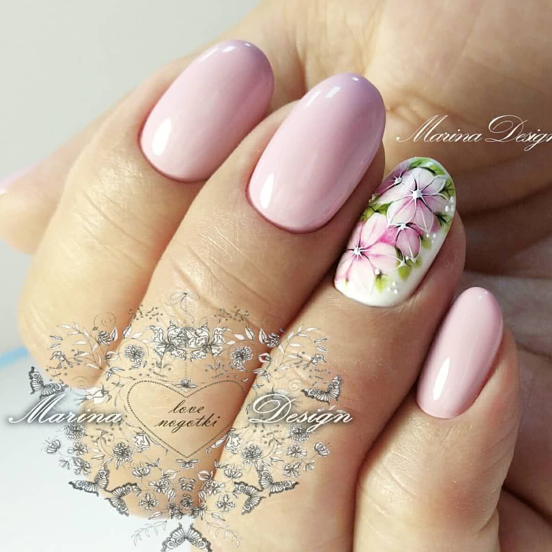 Маникюр с нежными цветами: актуальные оттенки и декор