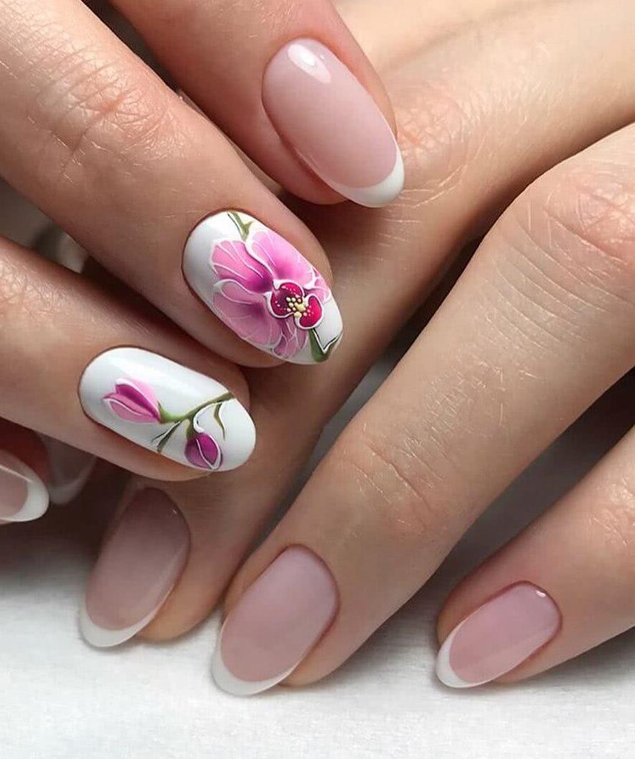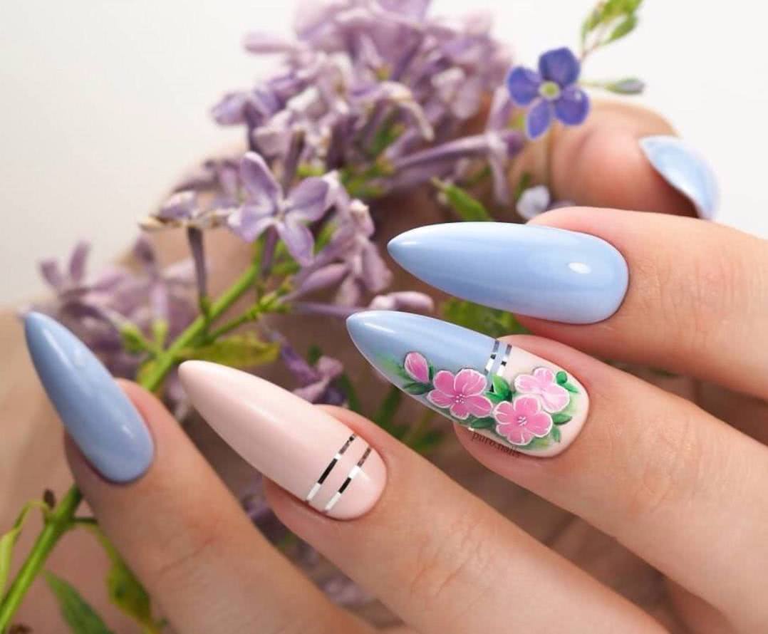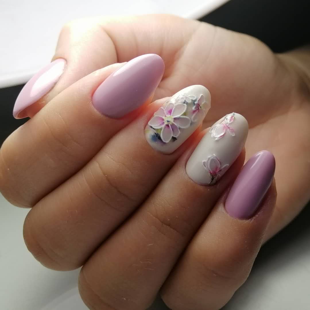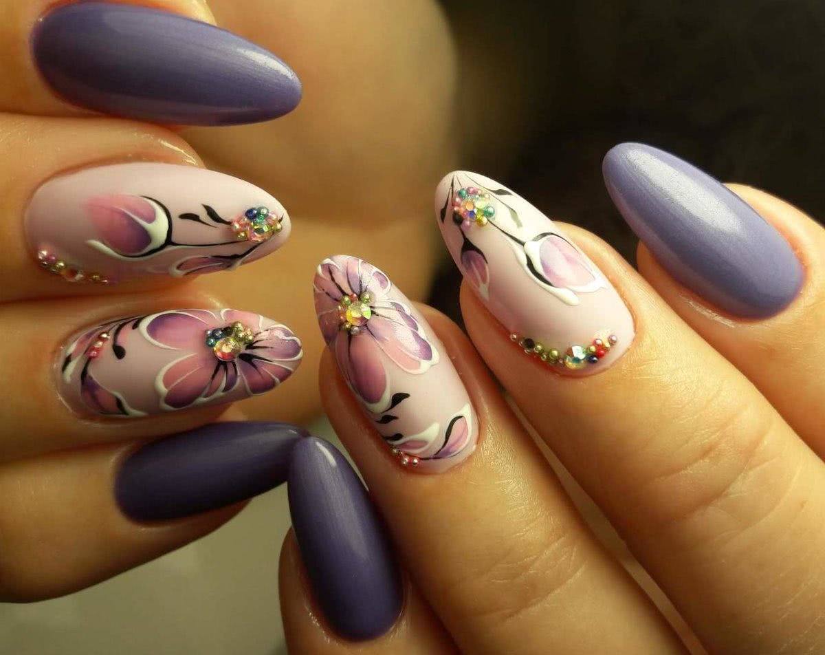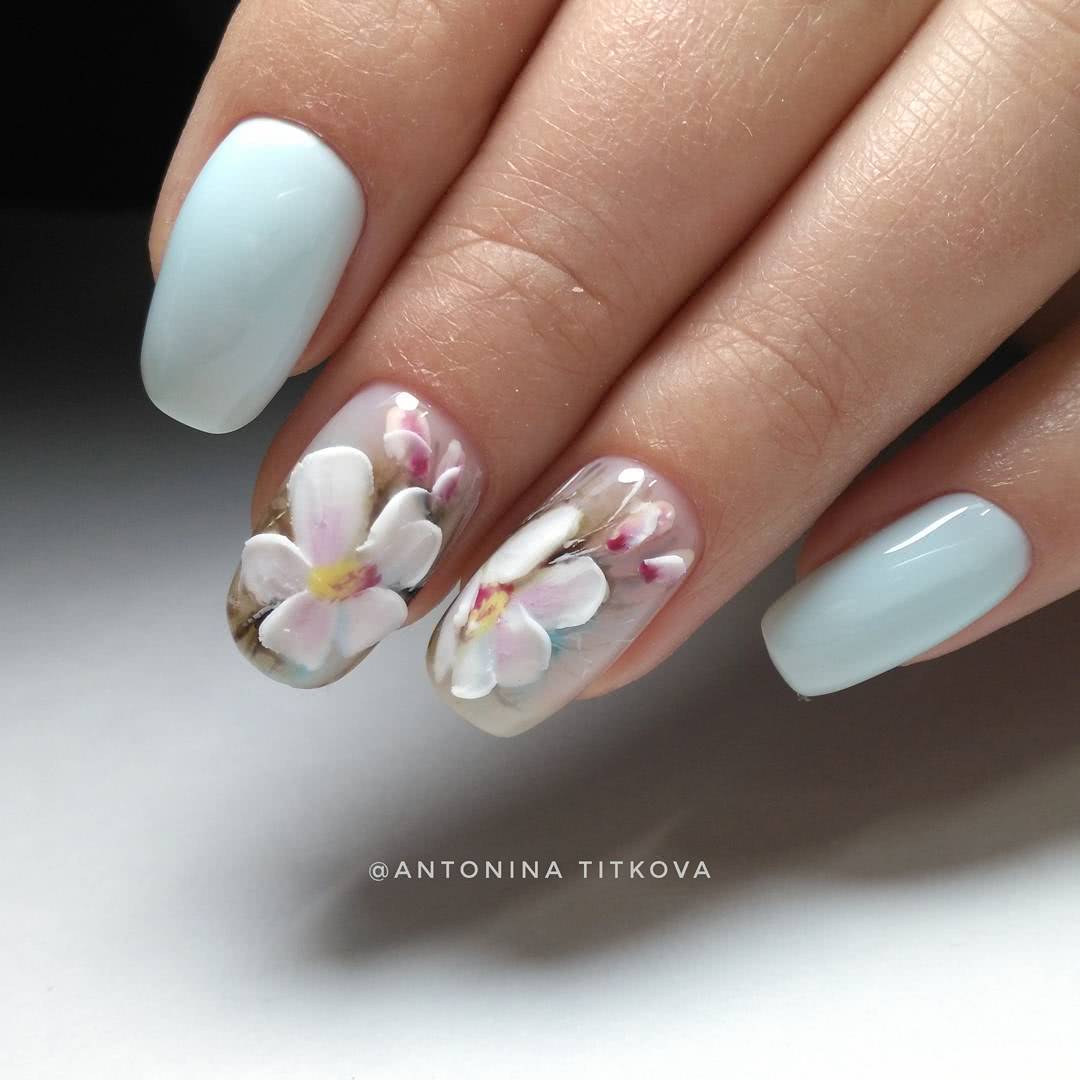 Маникюр с нежными цветами: актуальные оттенки и декор