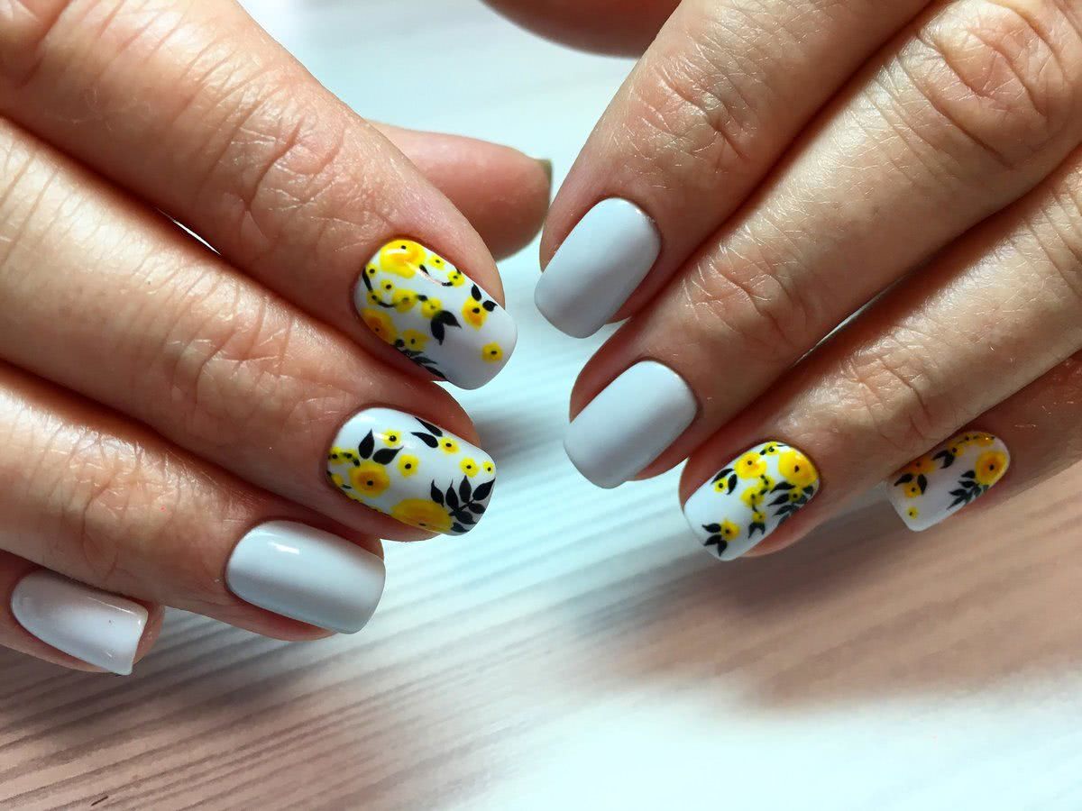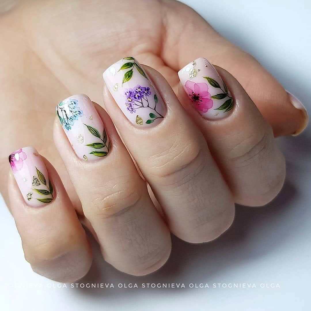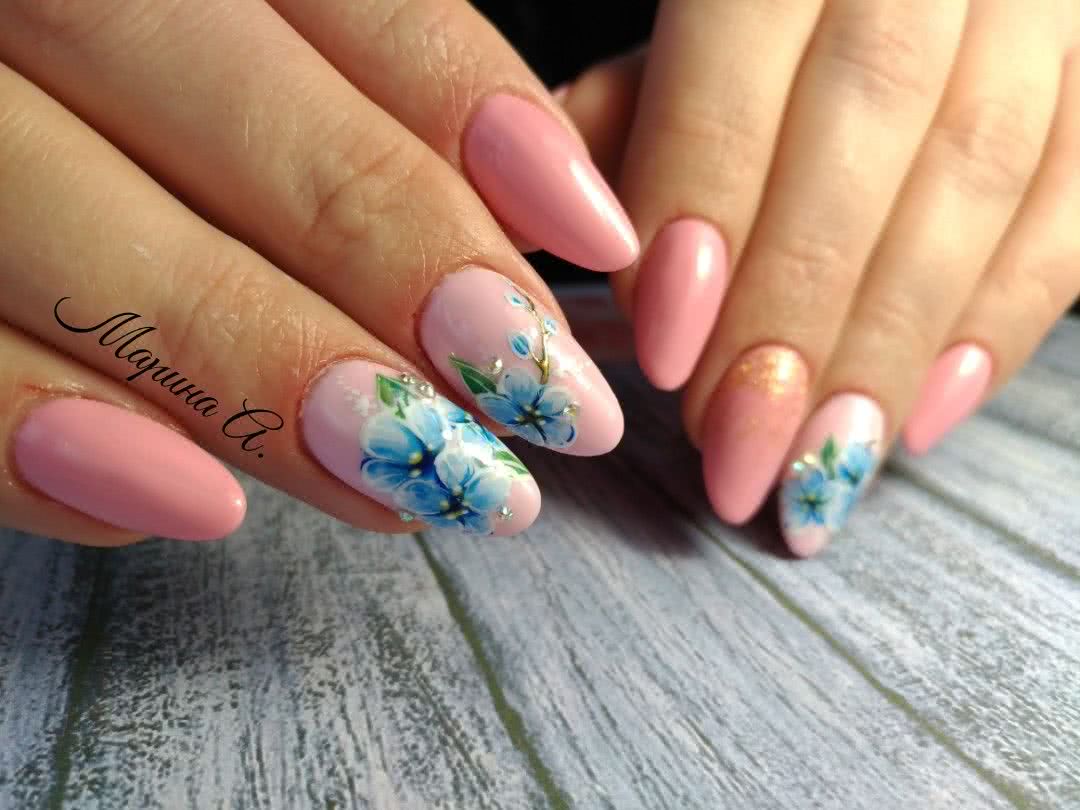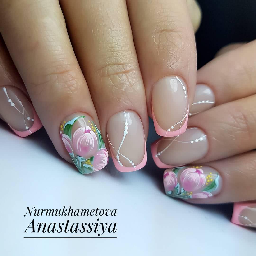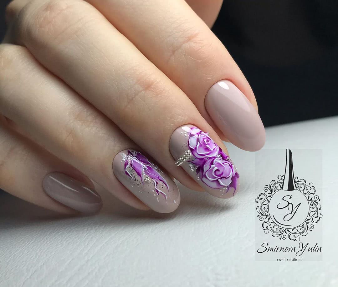 Маникюр с нежными цветами: актуальные оттенки и декор