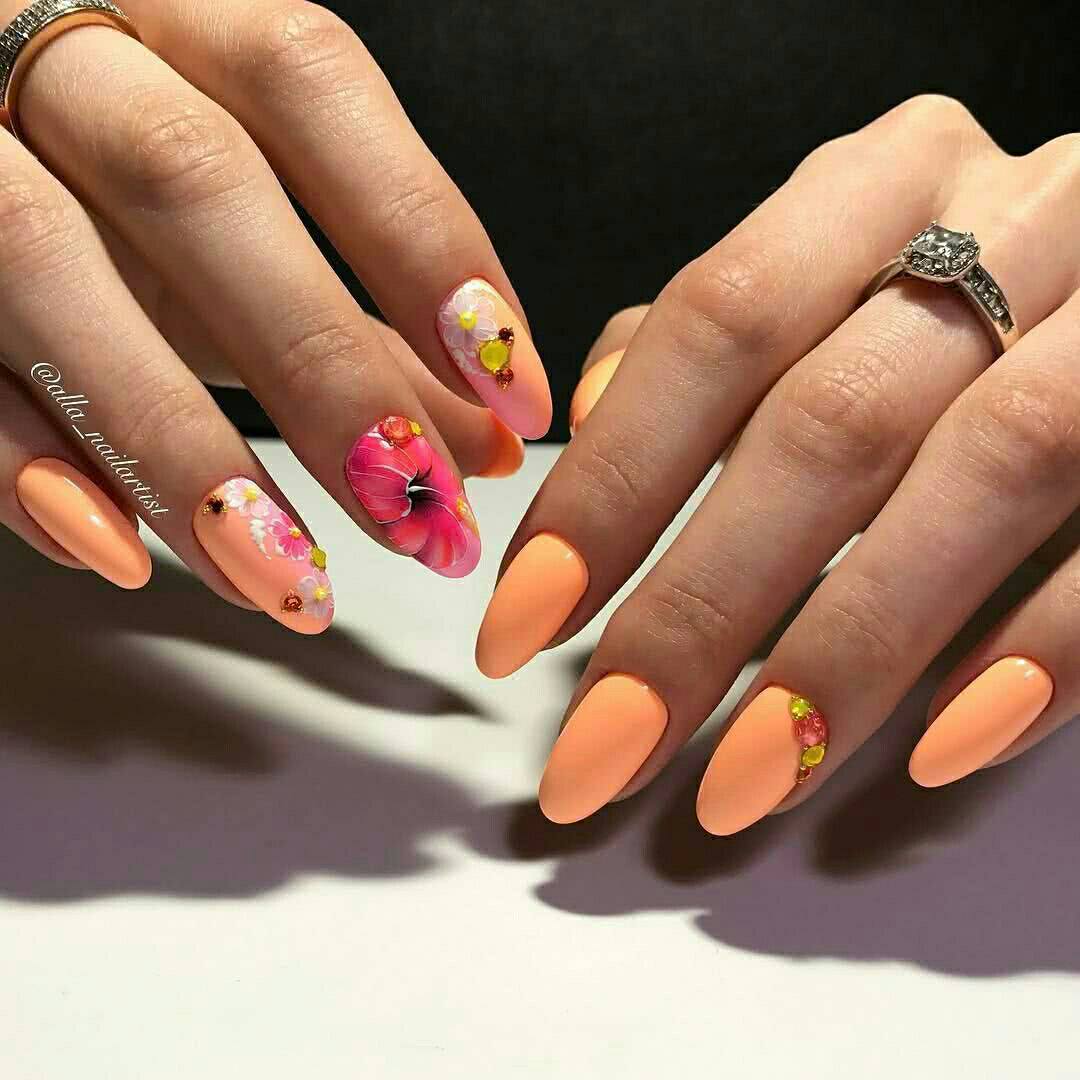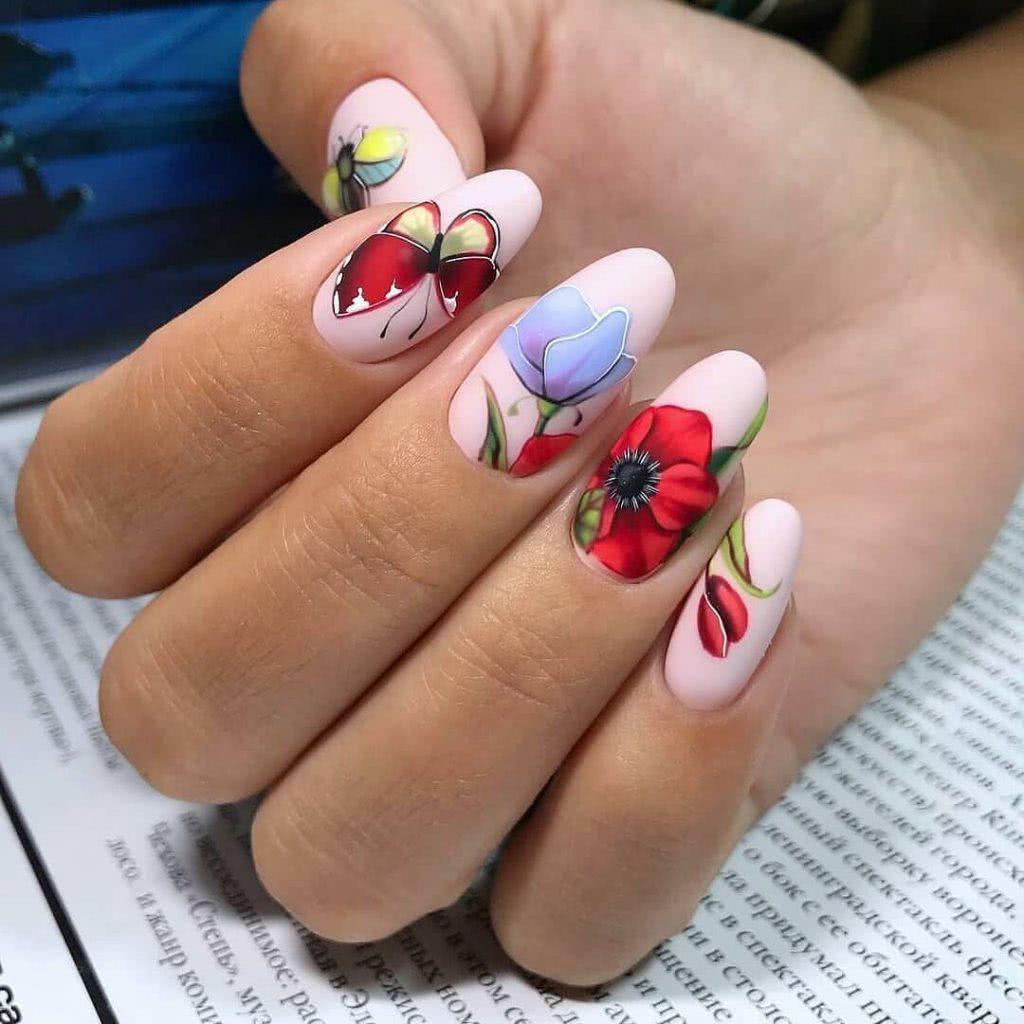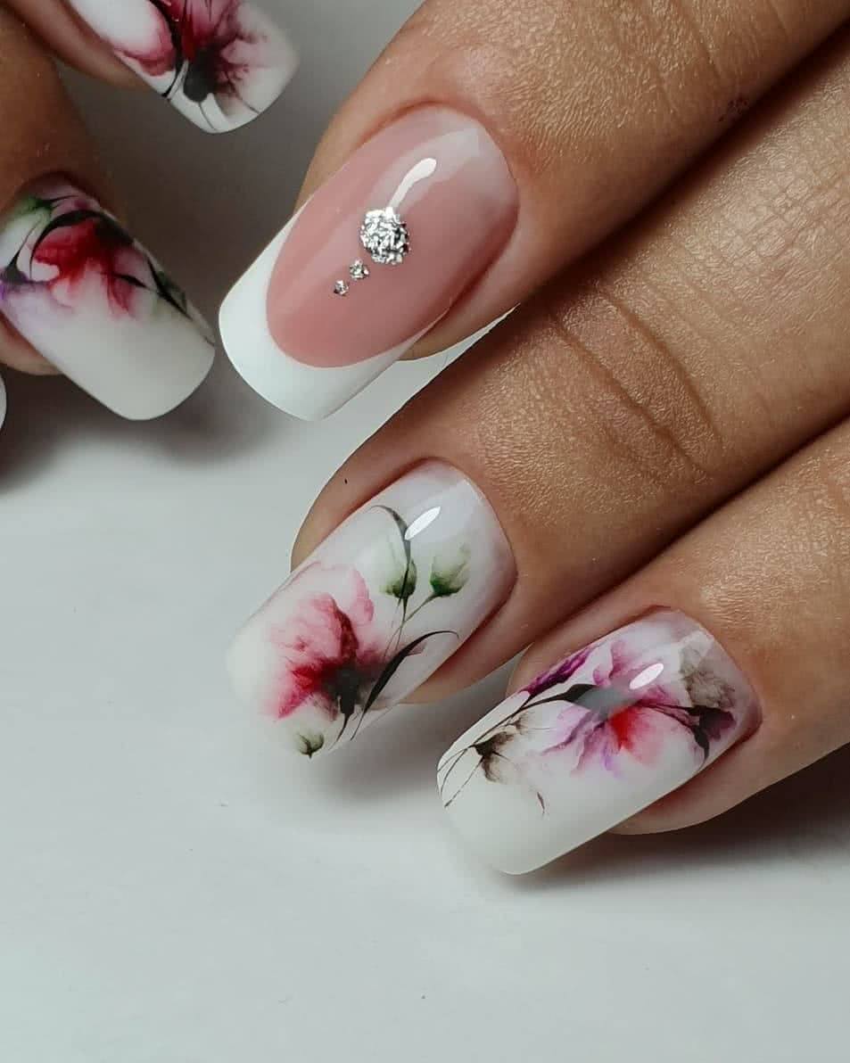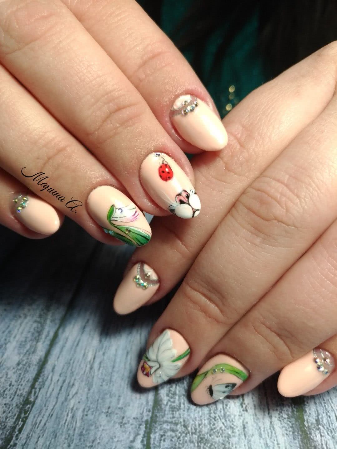 Маникюр с нежными цветами: актуальные оттенки и декор