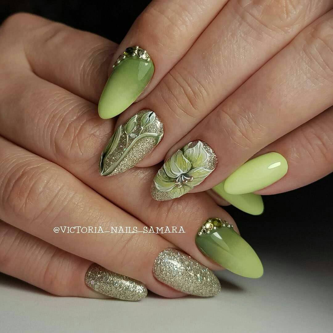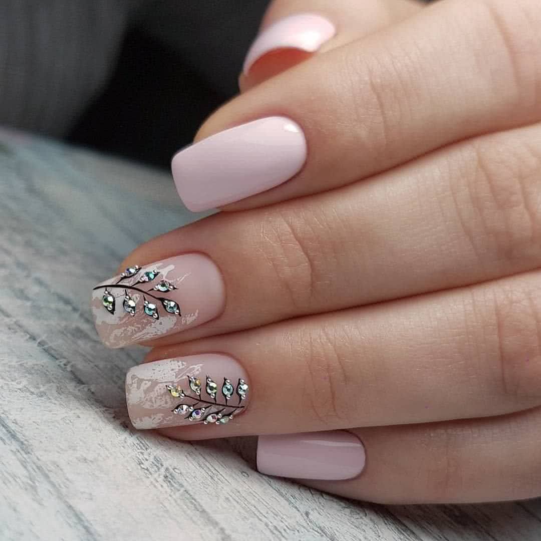 Разнообразие камней и стразов позволяет создать стильные нейл-арты, где этот декор будет ненавязчиво дополнять весь дизайн. Стразы используются для выделения сердцевинки цветка, для имитации росы, для выделения листьев. Используйте серебряные и золотые стразы, конусные и круглые камни. Красиво смотрятся крупные зеленые стразы, которые имитируют траву и другую флористику.
