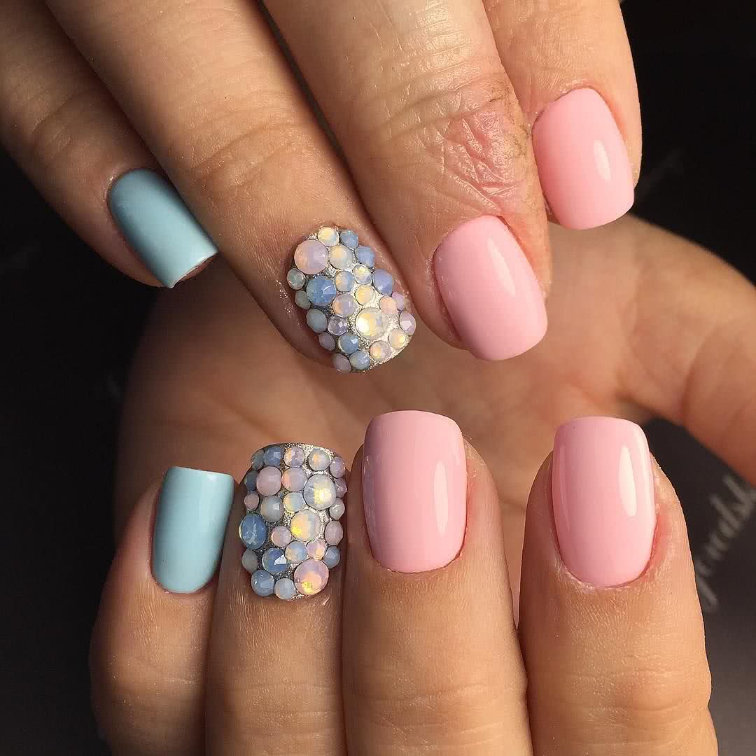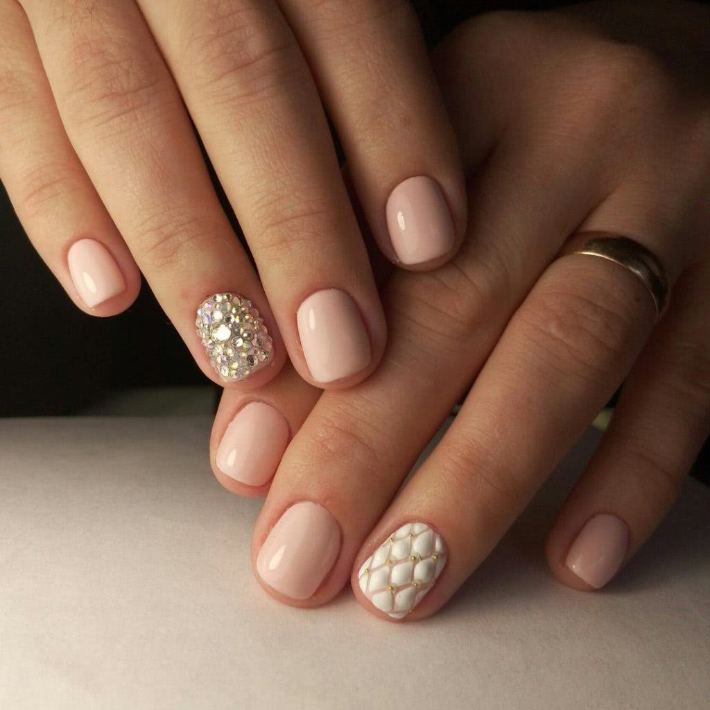 Мелкие камни на ногтевой поверхности смотрятся изумительно. Они прекрасно сочетаются с бледными красками, делая дизайн индивидуальным и неповторимым.