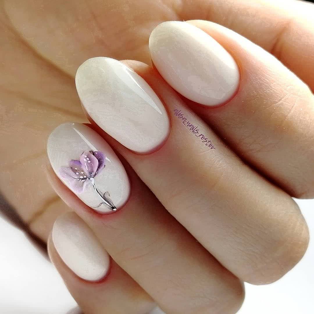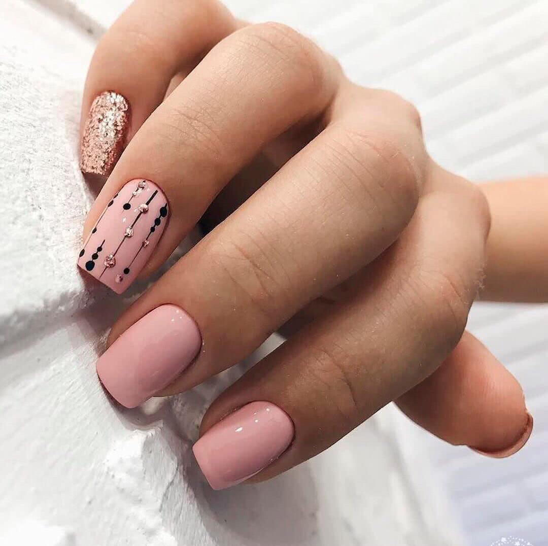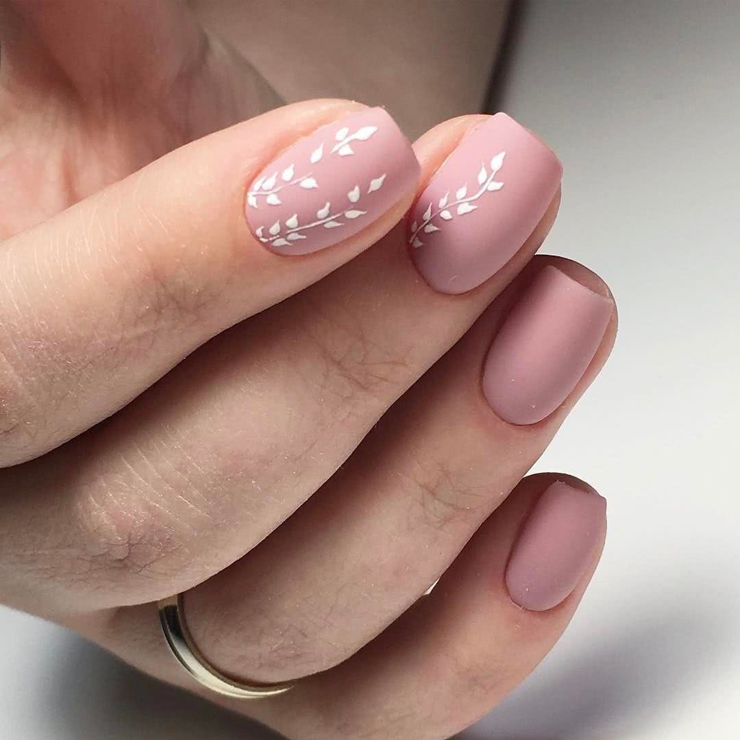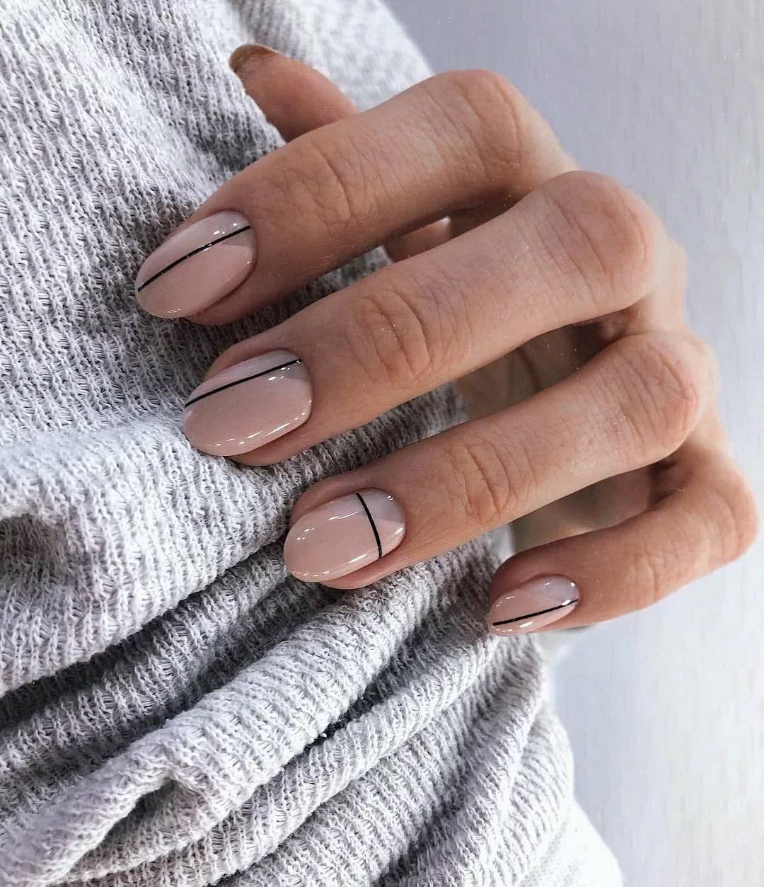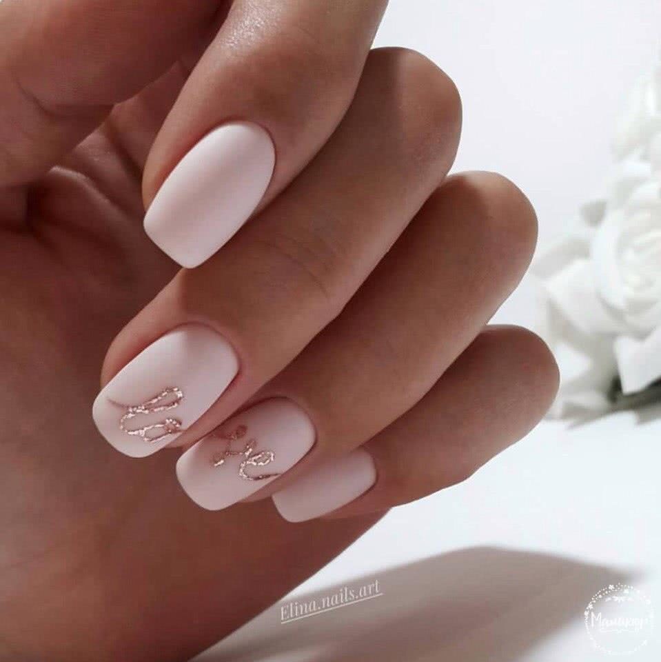 #5 Нежный маникюр с рисунком минимализм на короткие ногти 2020