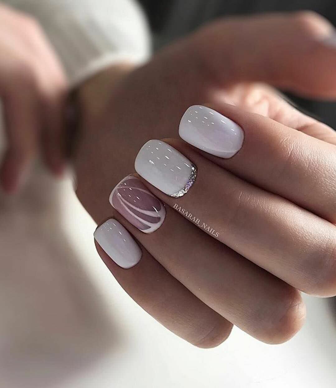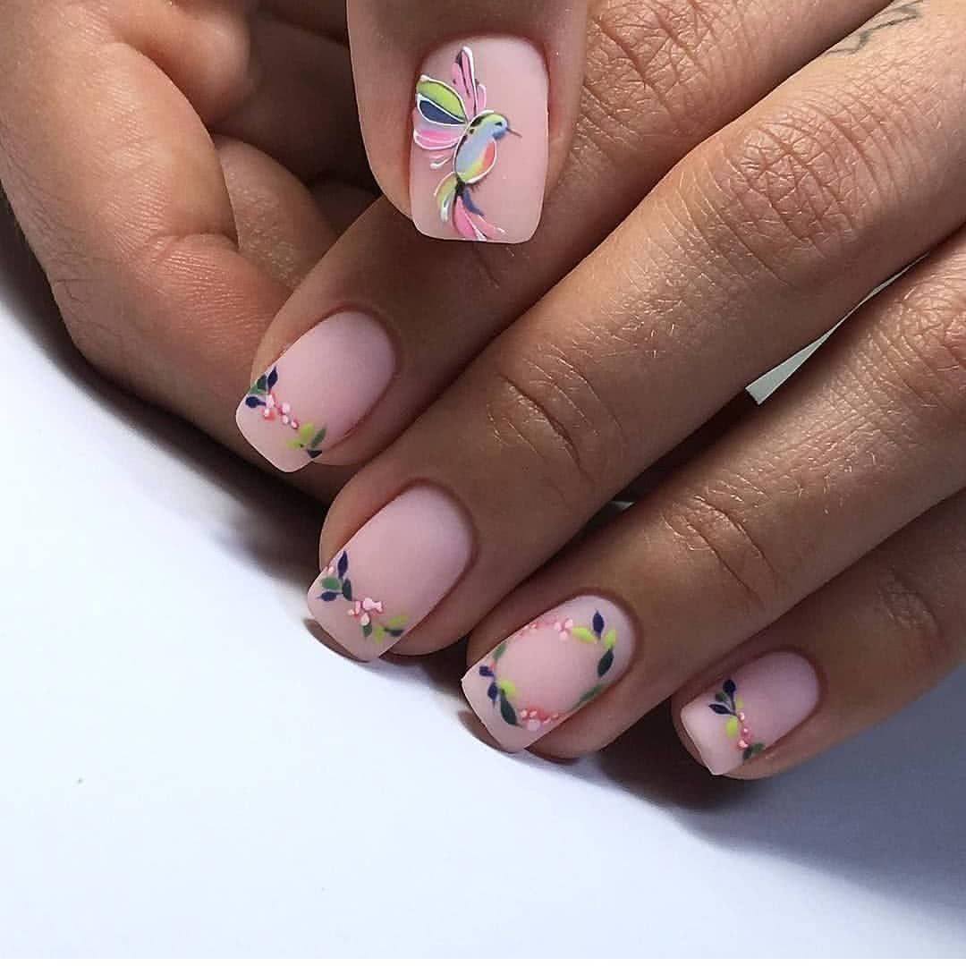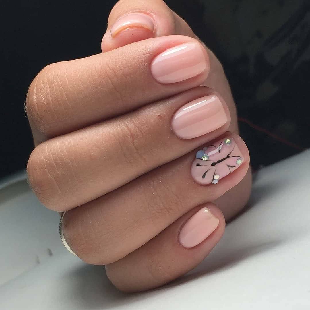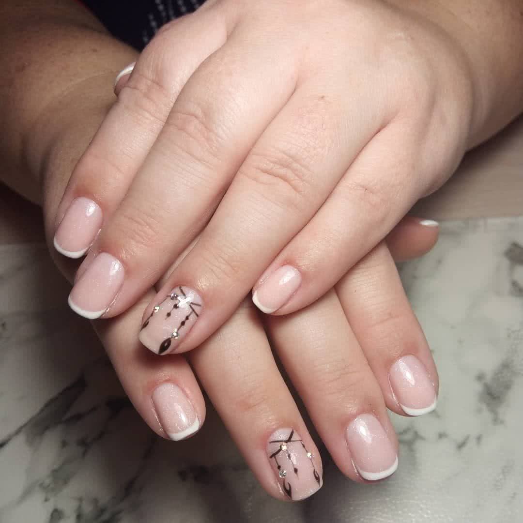 #5 Нежный маникюр с рисунком минимализм на короткие ногти 2020