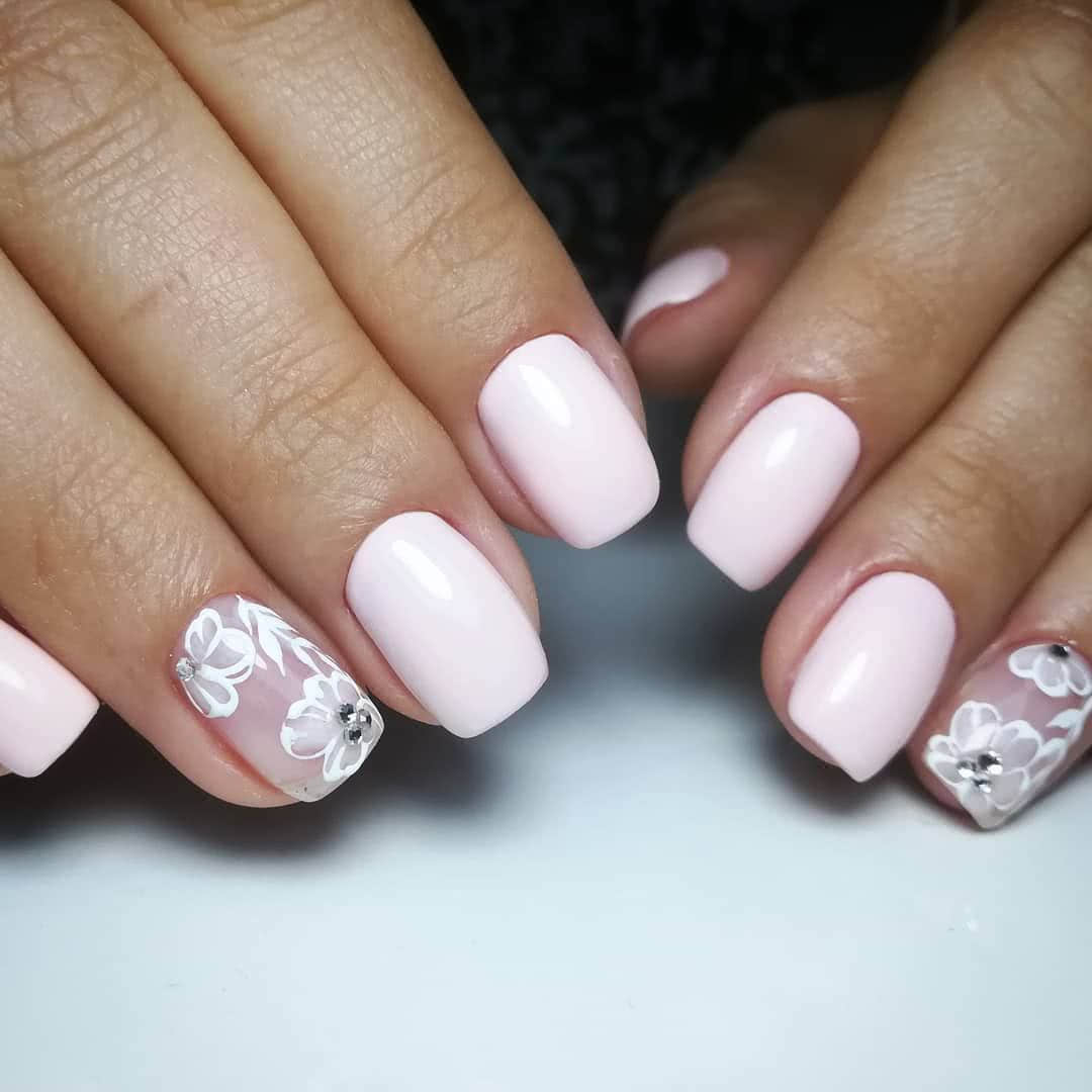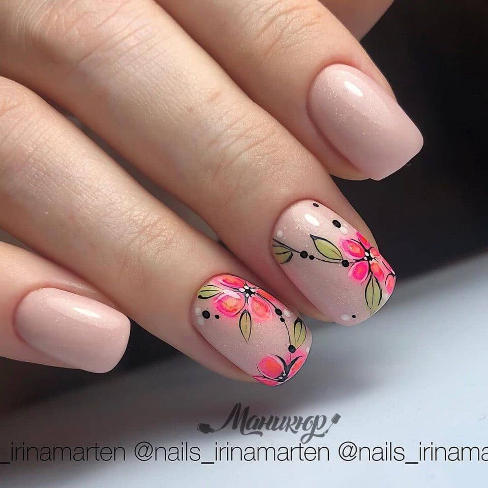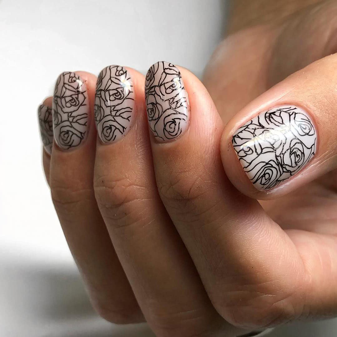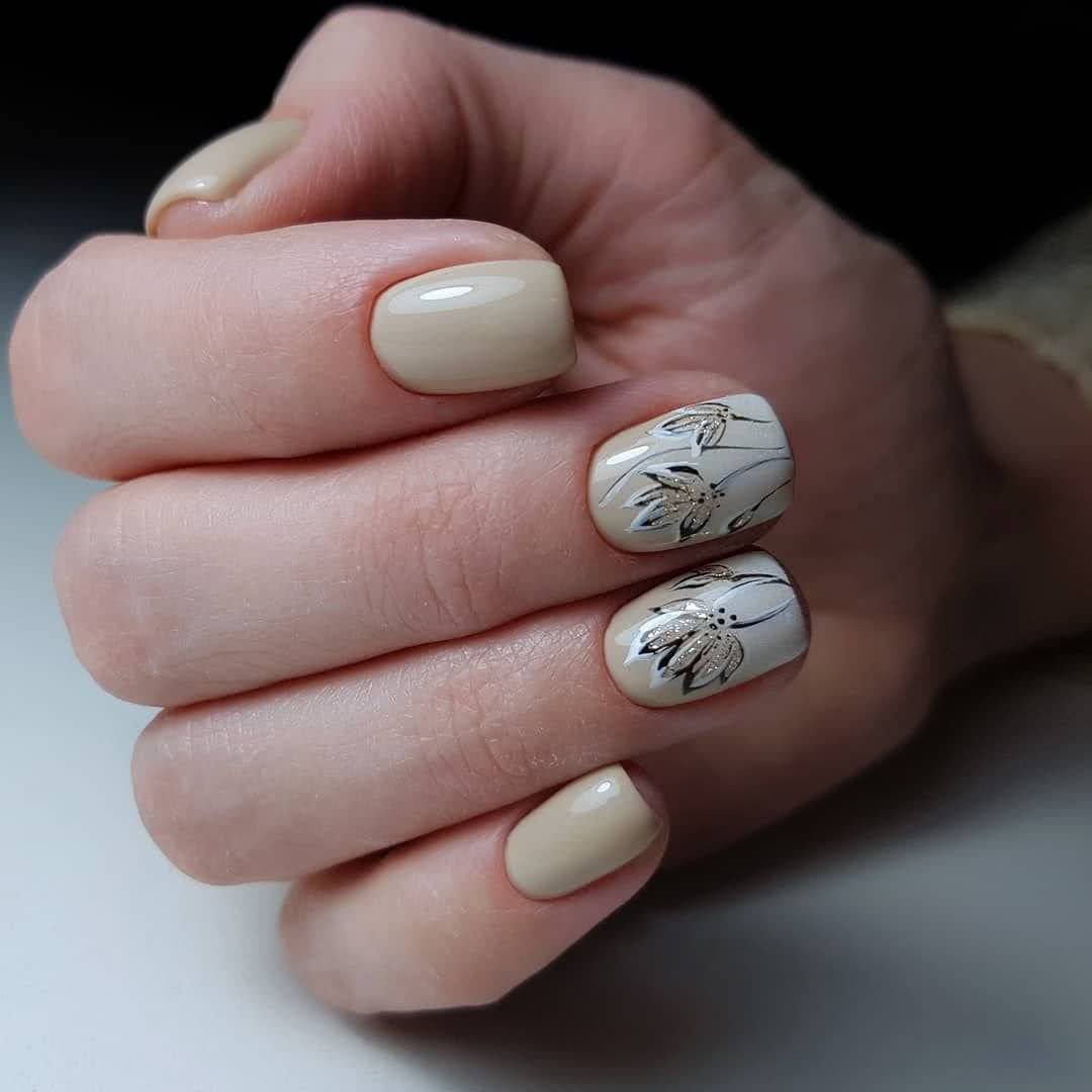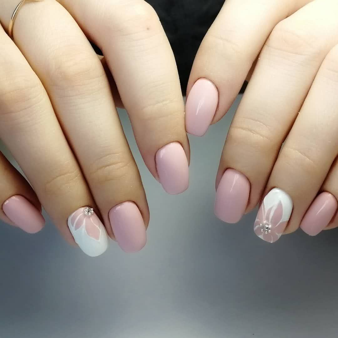 #5 Нежный маникюр с рисунком минимализм на короткие ногти 2020