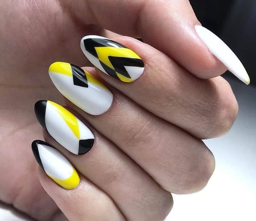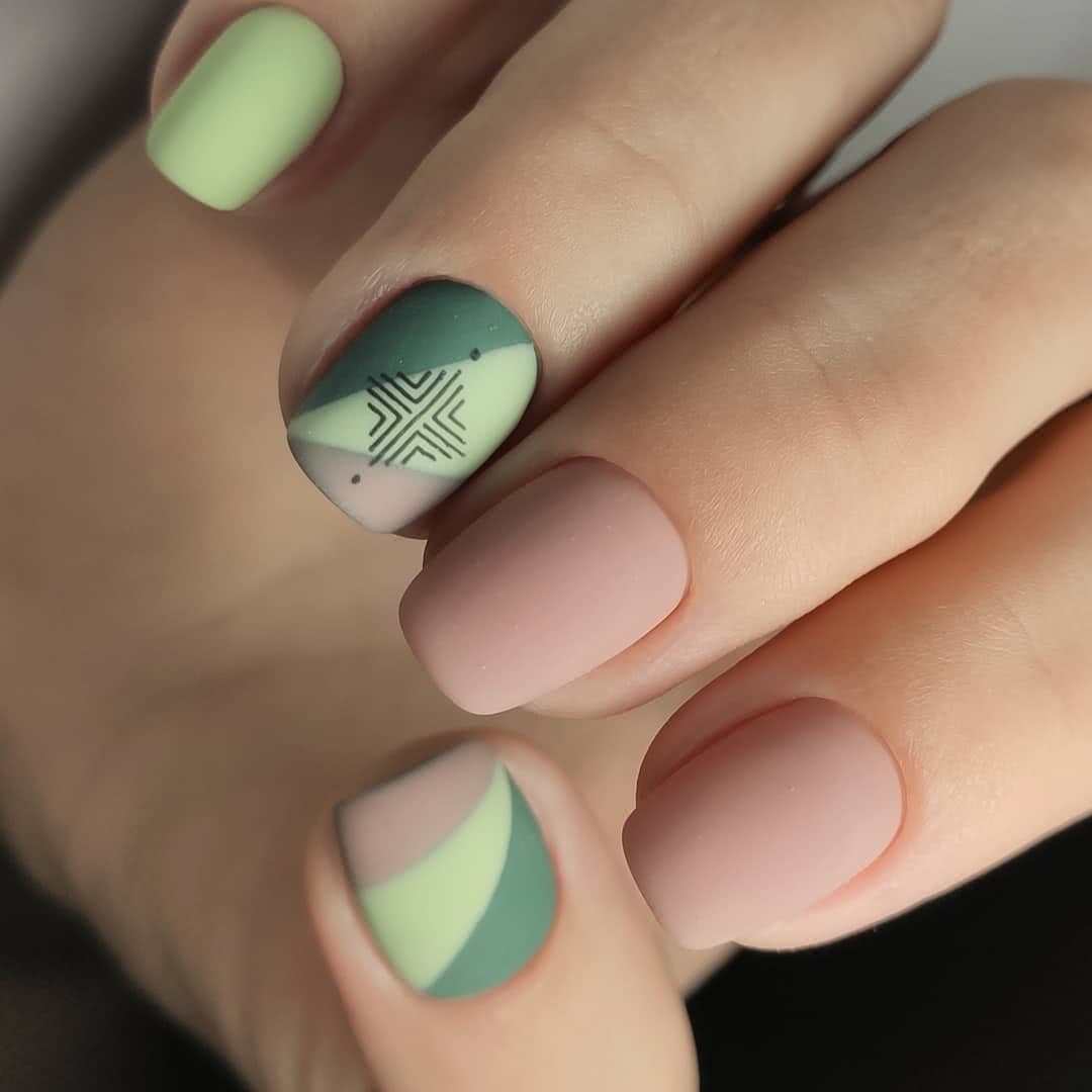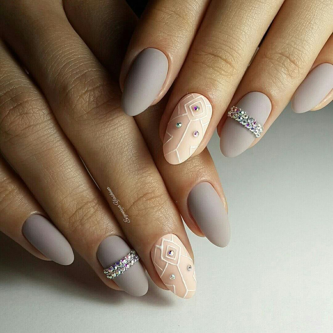 Для повседневного маникюра подойдет дизайн с геометрическими фигурами. Ромбы, треугольники, линии на нюдовом или других нежных тонах станут трендом следующей весны. Нейл-арт в геометрическом стиле будет модным в сочетании с длинными ногтями миндалевидной формы.