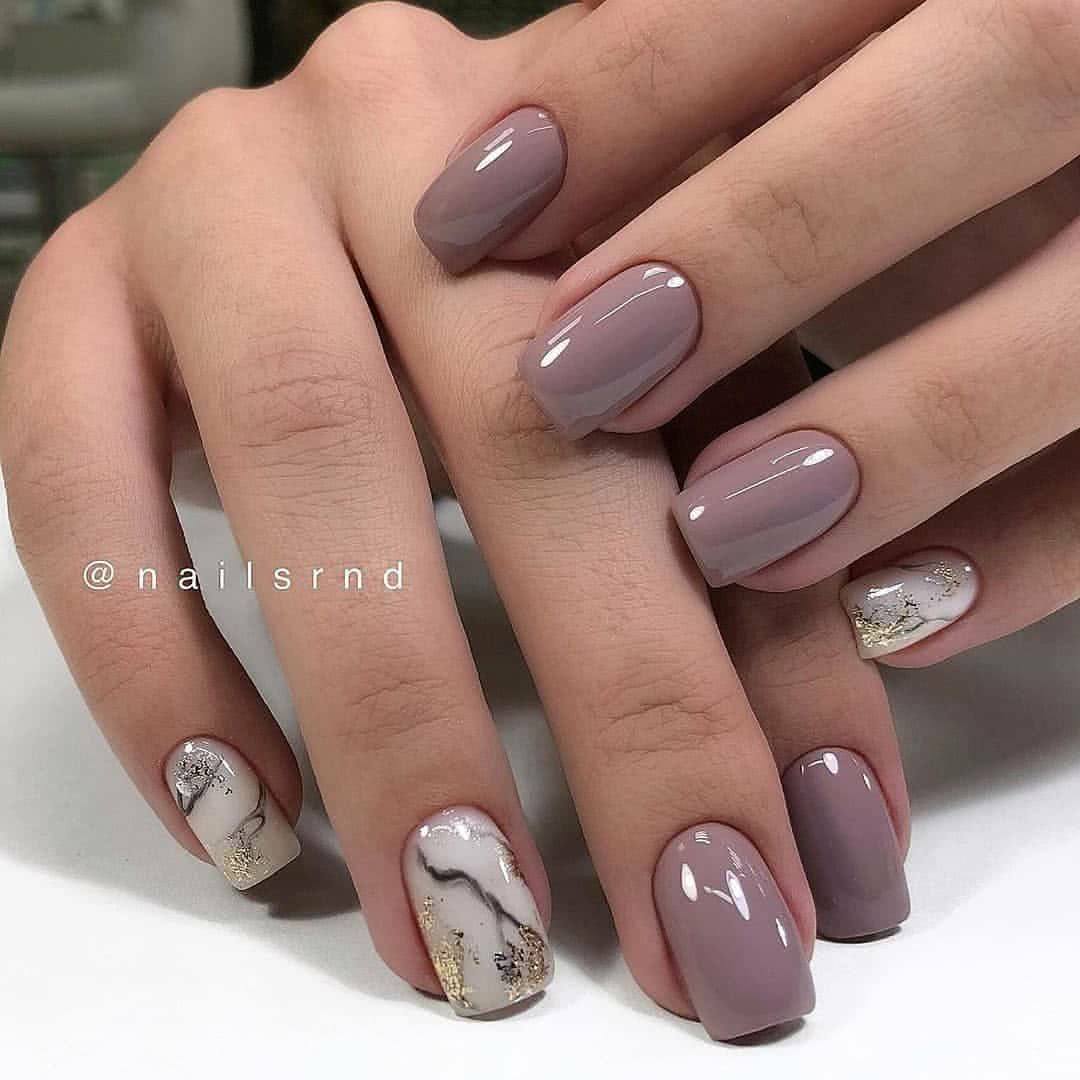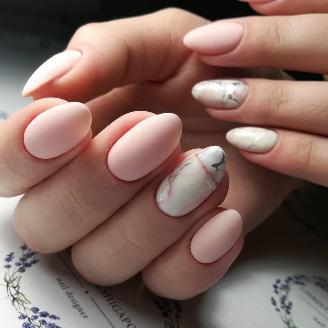 Отличным дополнением элегантного маникюра станет выделение одного или нескольких ногтей мраморным узором.