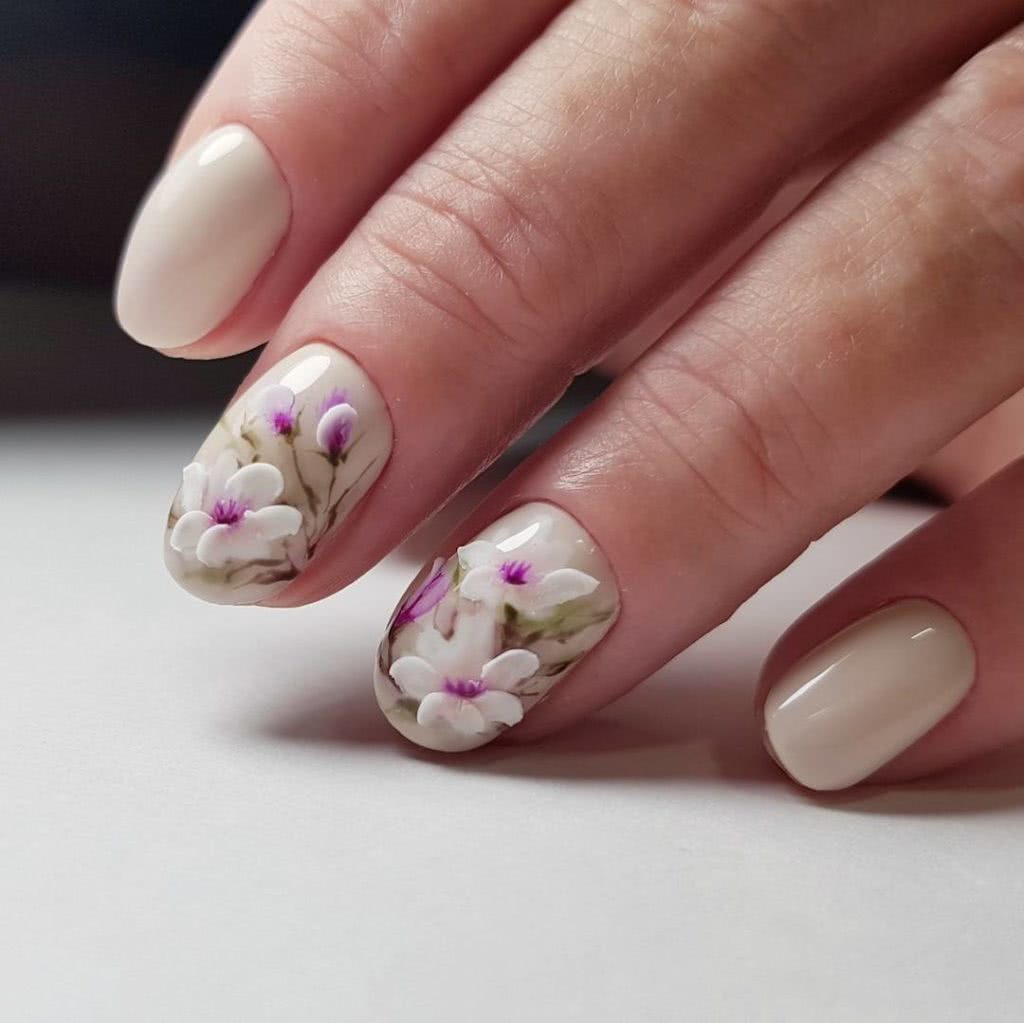 Сложно представить нежный маникюр на длинные ногти без цветочных композиций