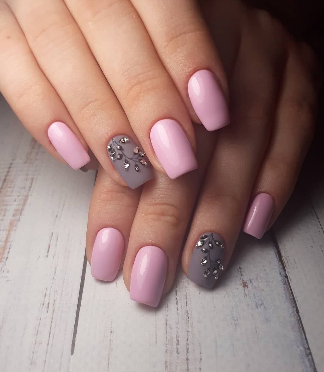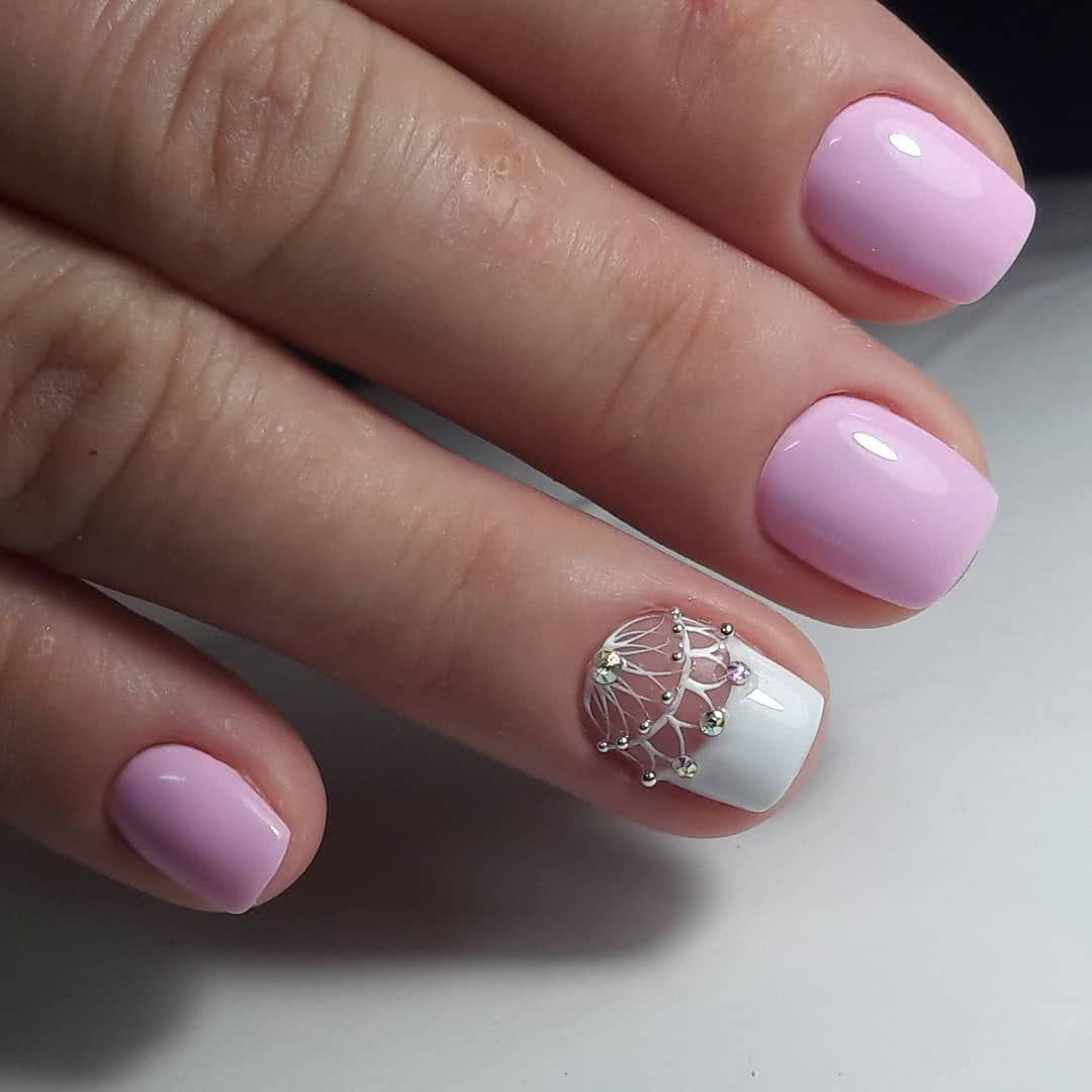 Нежный маникюр 2019 года сложно представить без сверкающих камней. Почему бы в работу не добавить стразы. Ведь все девушки любят драгоценности, а элементы декора придадут дизайну некоторую изюминку.