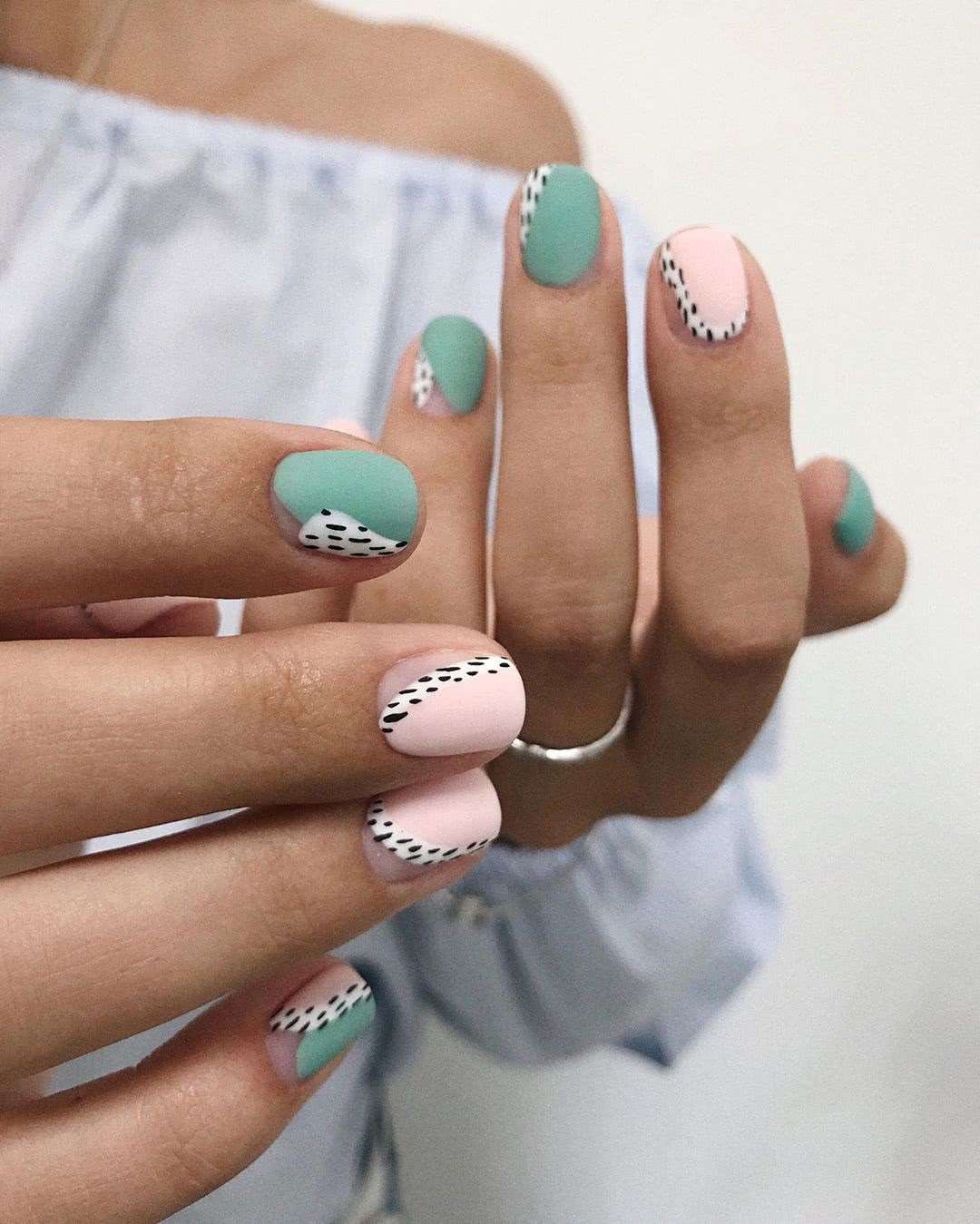 Попробуйте сделать черно-белый или розово-голубой маникюр. Так же можете попробовать сделать матовый маникюр в домашних условиях.