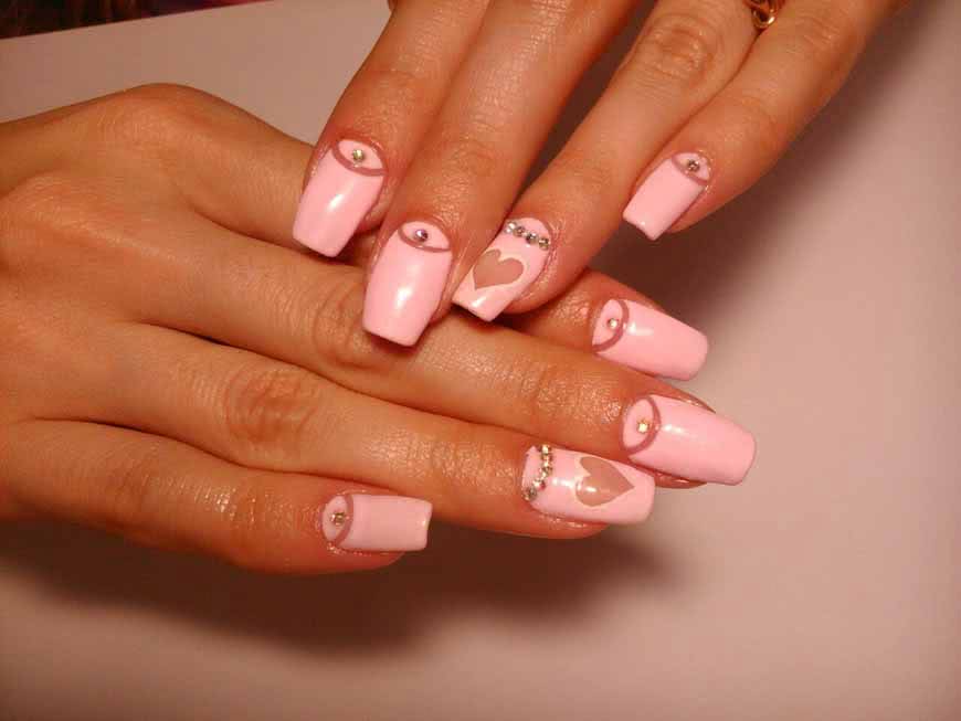 На очень короткие ногти оптимальным вариантом для маникюра будет использование нежных цветов, которые не будут привлекать к себе внимание, придавая рукам ухоженный вид. Чтобы удлинить очень короткие ногти, мастера нейл-дизайна часто используют блестящий декор – блестки, стразы, глиттерные и шиммерные лаки