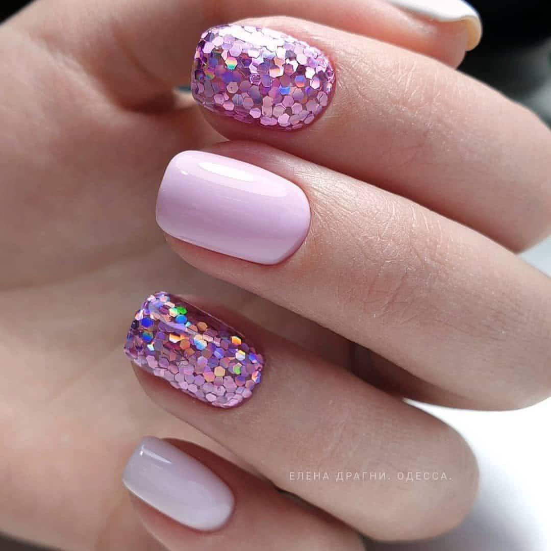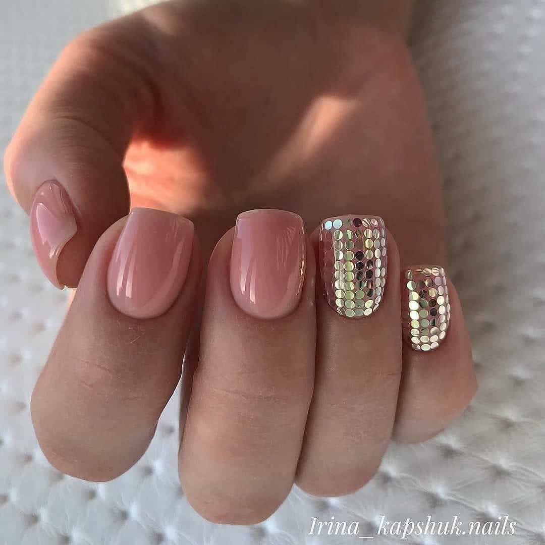 #1 Нежный маникюр на короткие ногти со слюдой 2020