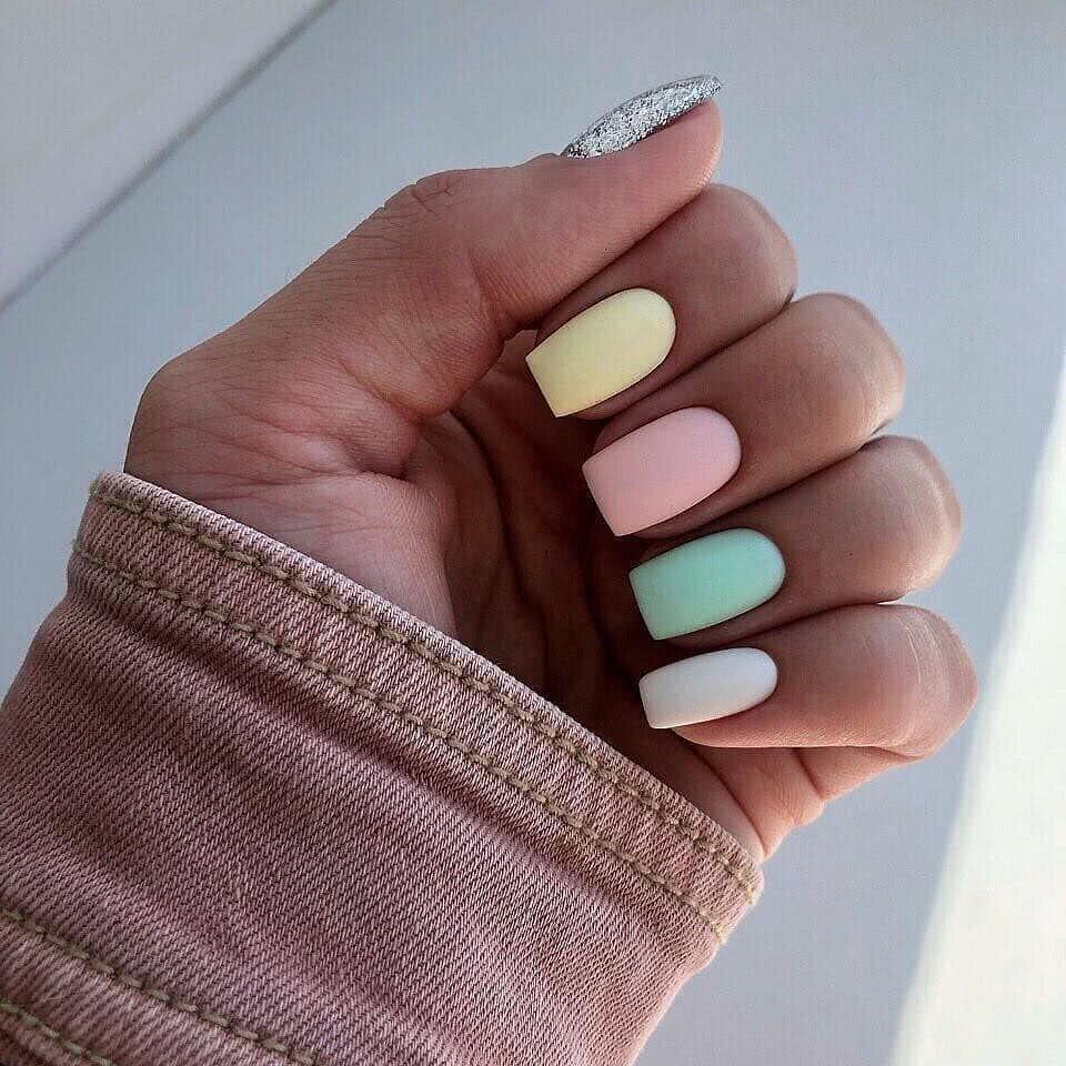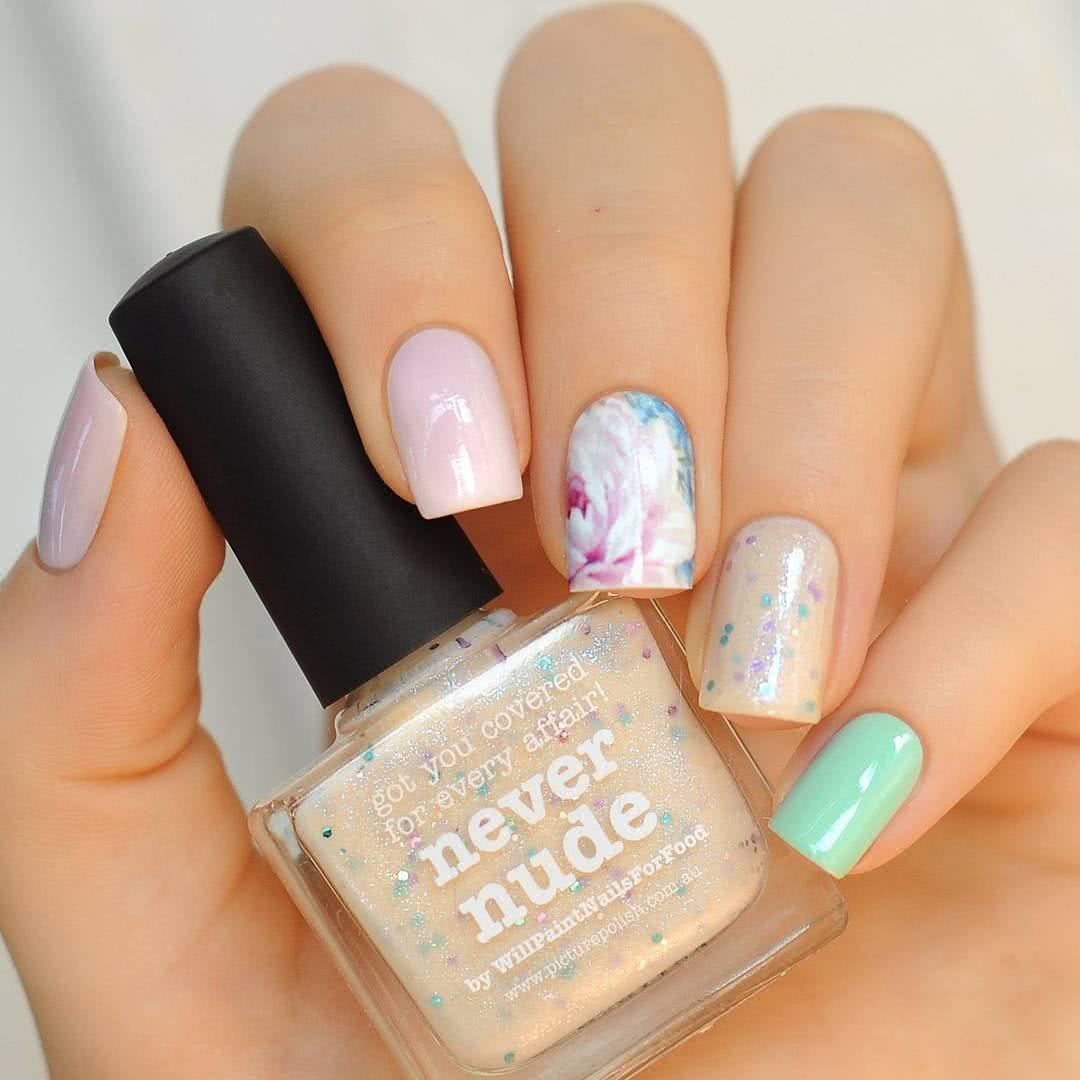 Вне зависимости от выбранного вами дизайна, существуют определённые правила, благодаря которым маникюр станет очаровательным. Скажите «нет» контрастным оттенкам. Даже очень светлые тона голубого и розового будут смотреться намного хуже, чем тот же розовый или бежевый цвет в различных оттенках. Лучше комбинировать похожие тона, например, мятный и бирюзовый, лавандовый и сиреневый и так далее.