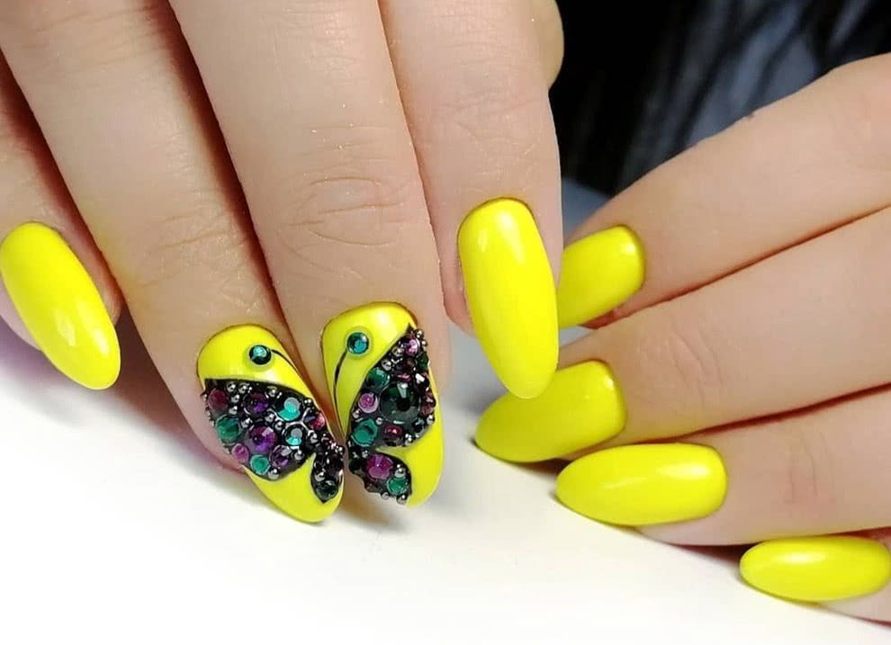 В отношении геометрических форм и дизайна нежного цвета ногтей, то здесь как говорится самое широкое поле для реализации любых возможностей с нестандартными или проверенными идеями, как для классического исполнения маникюра с геометрическими составляющими, так и с неординарными, экстравагантными в желтом исполнении.