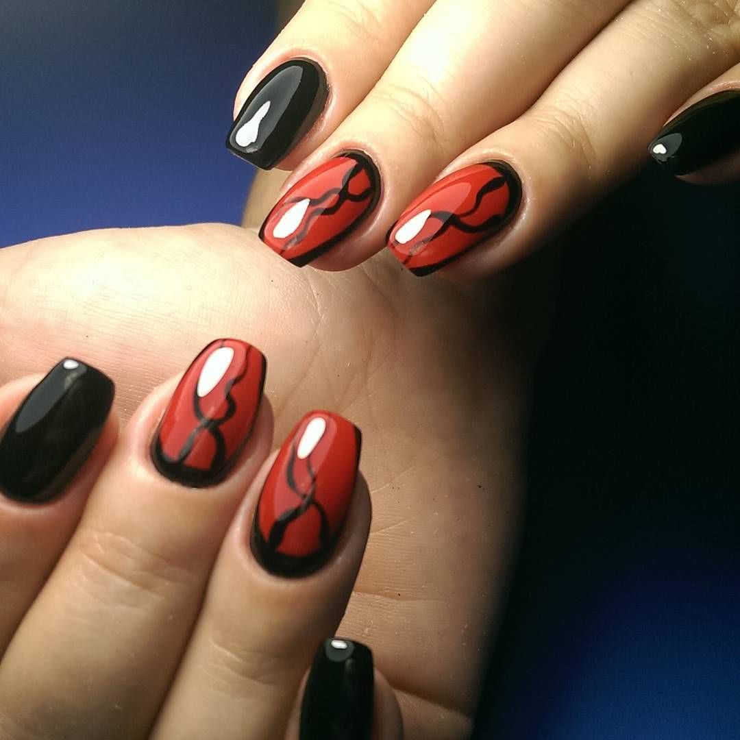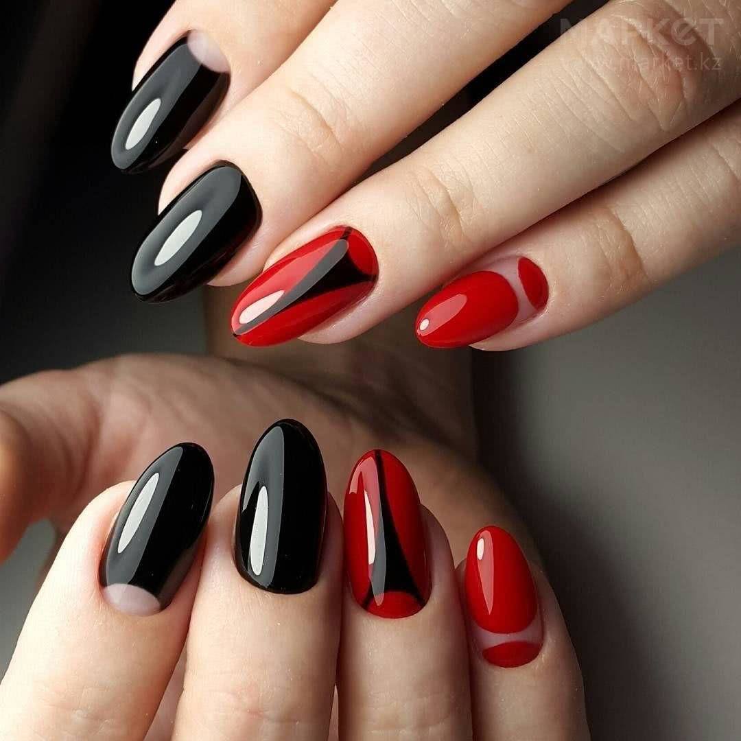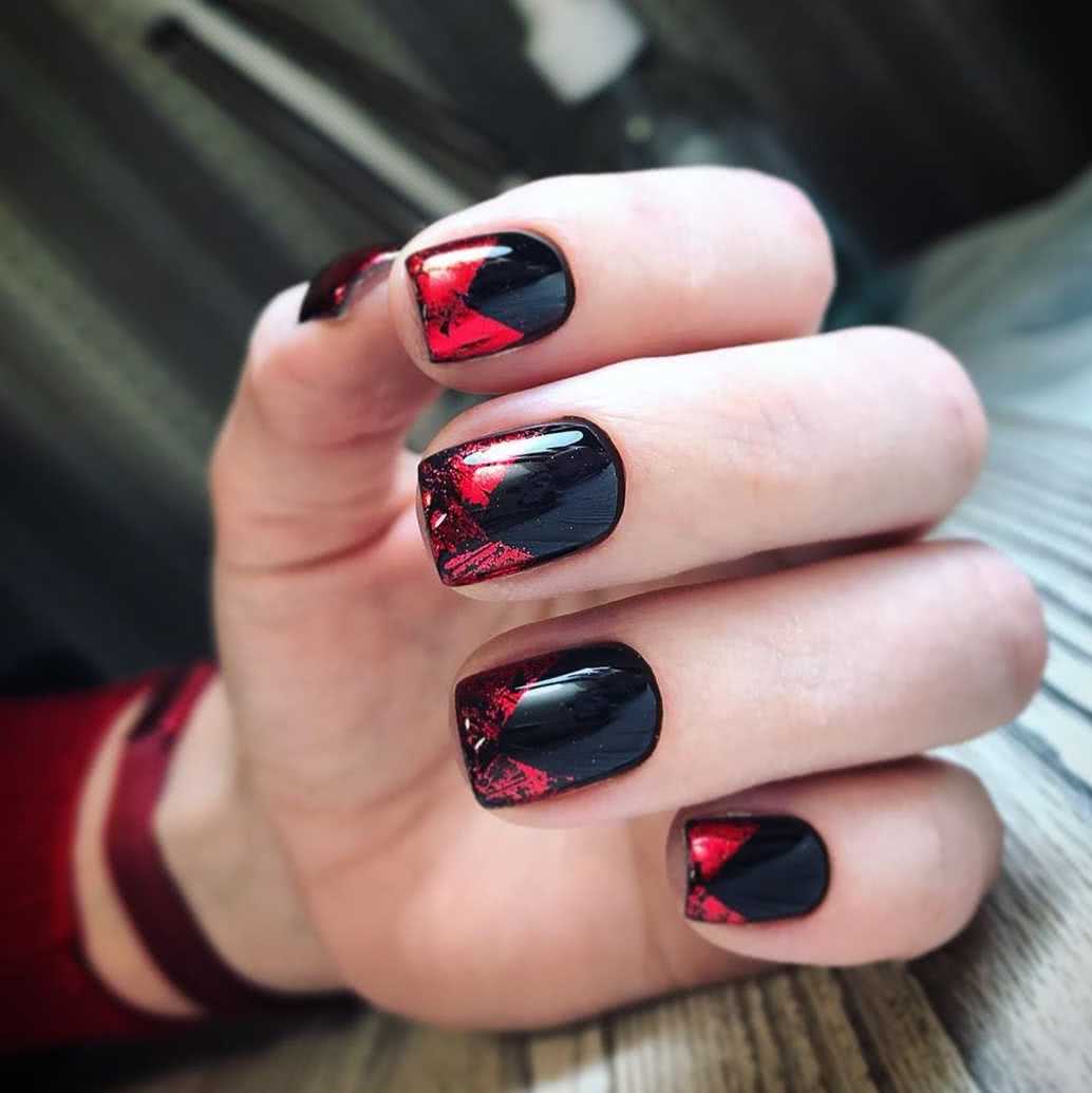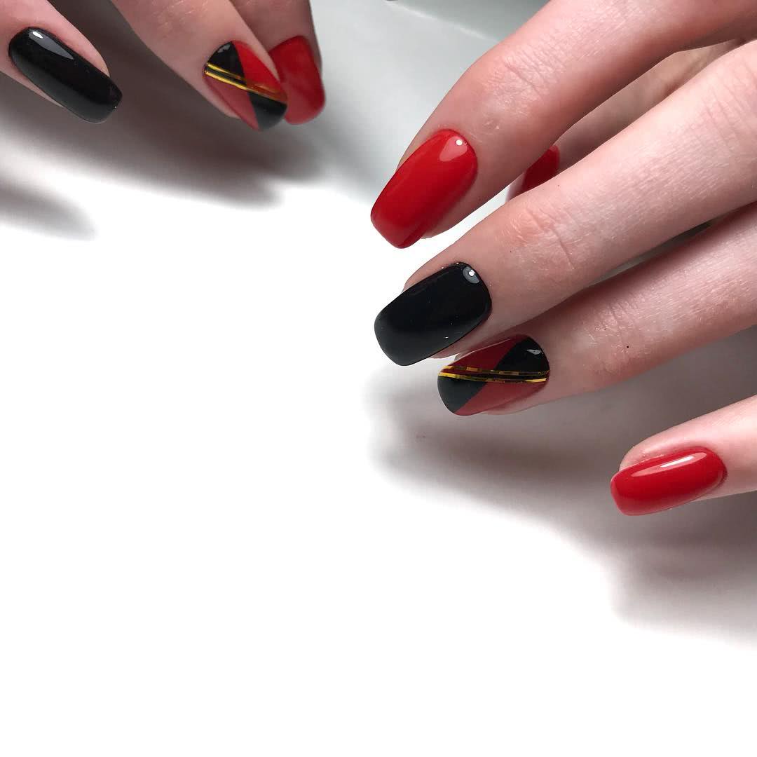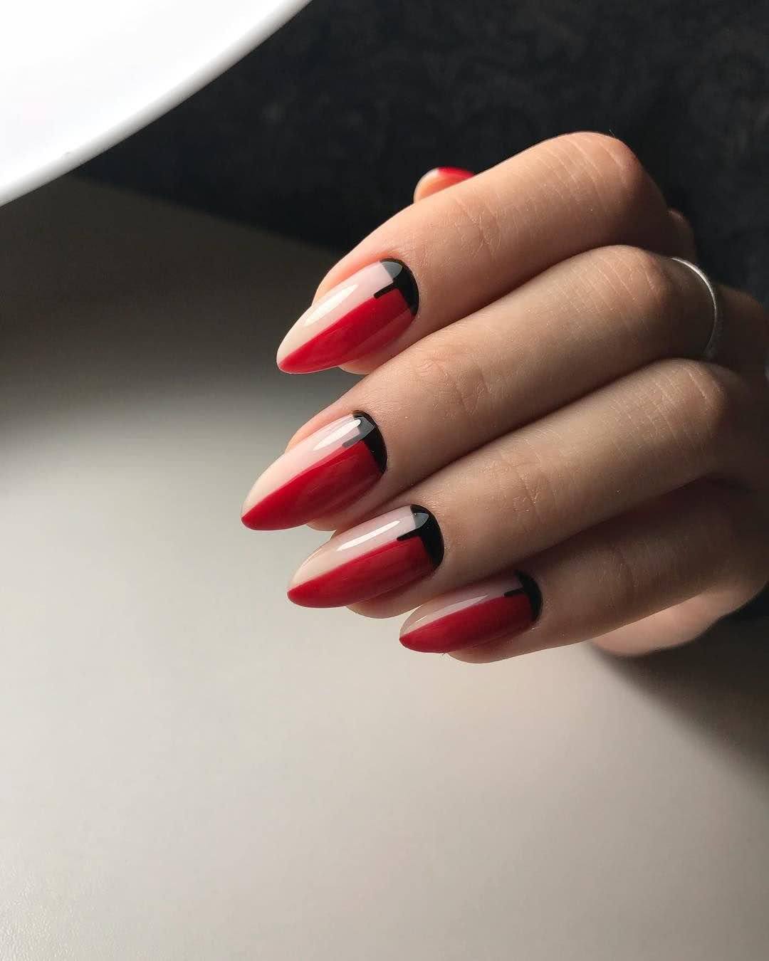 На фото новинки красных ногтей с черным 2019: