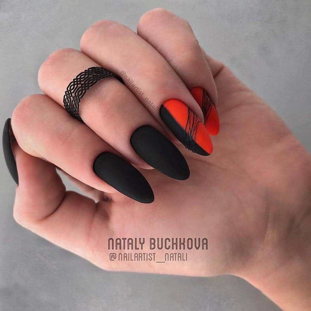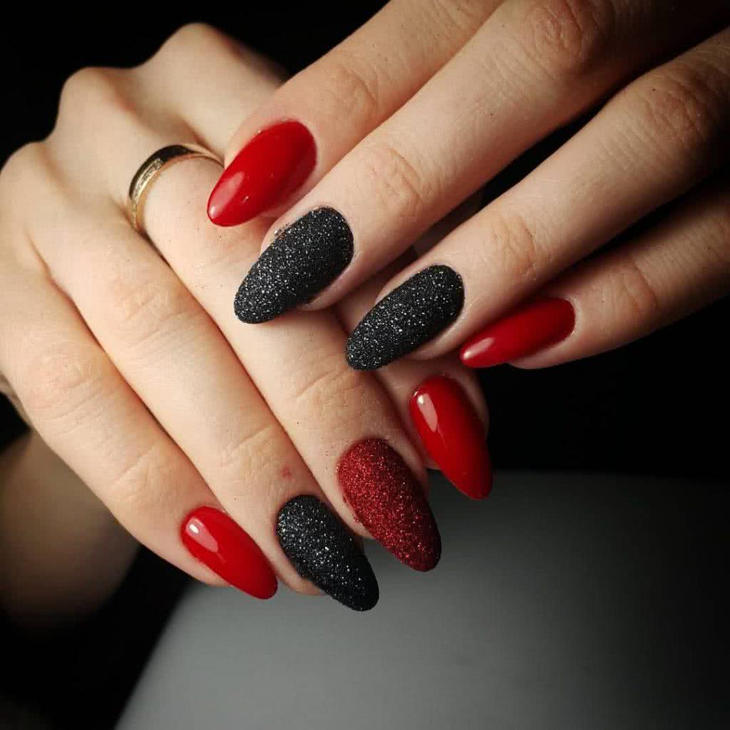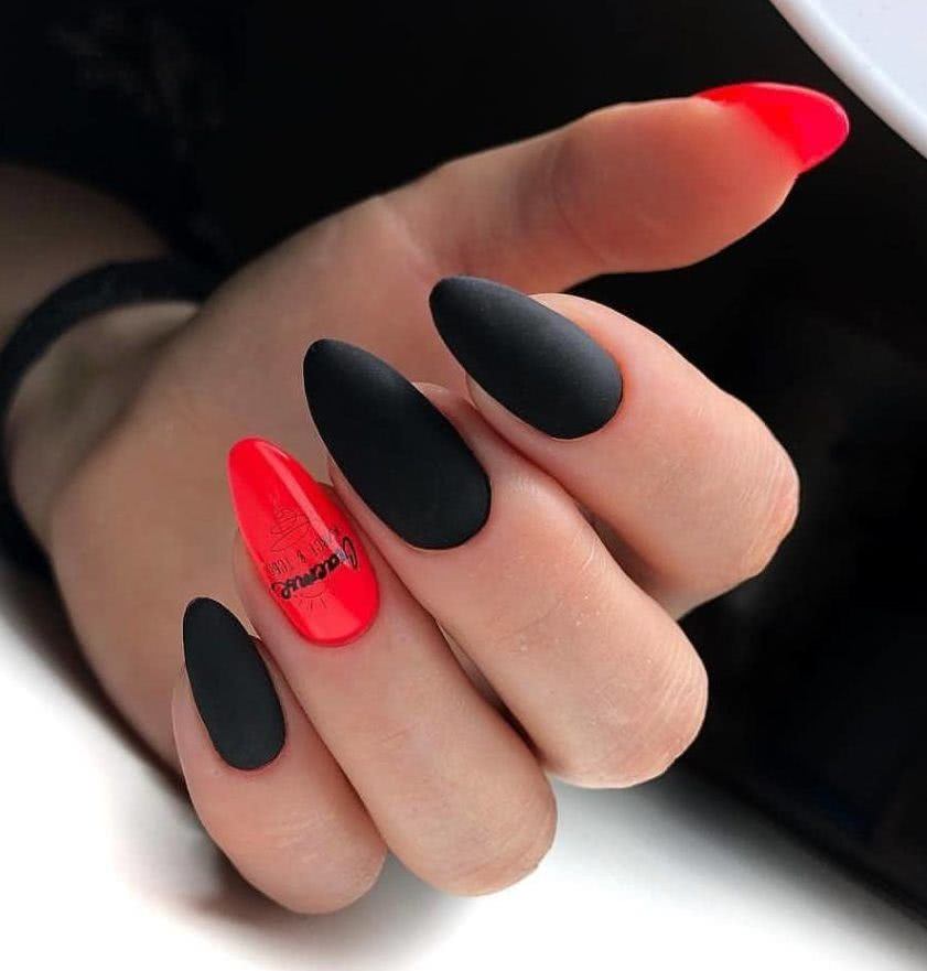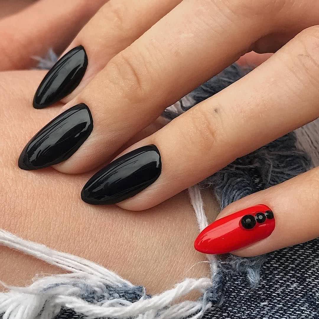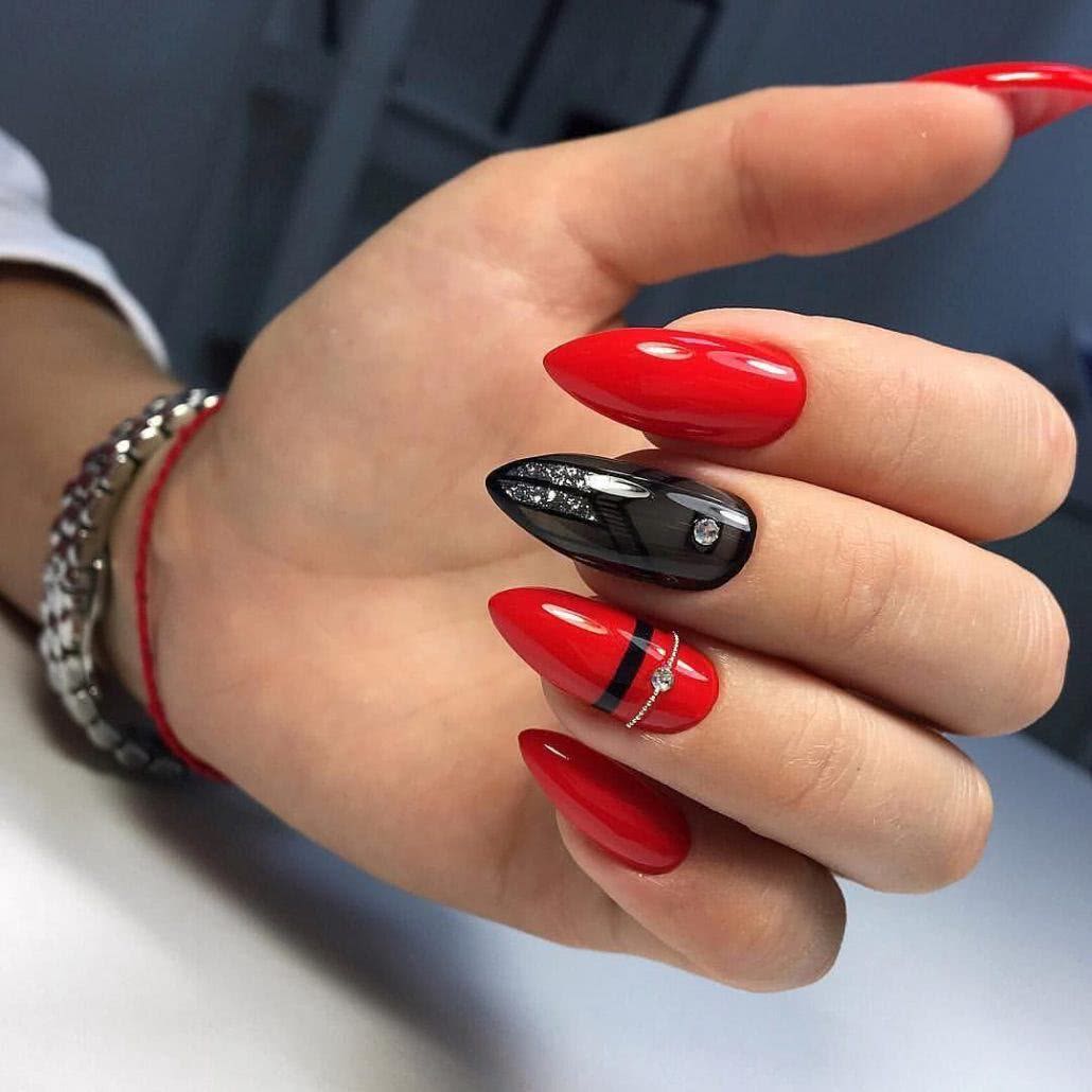 На фото новинки красных ногтей с черным 2019: