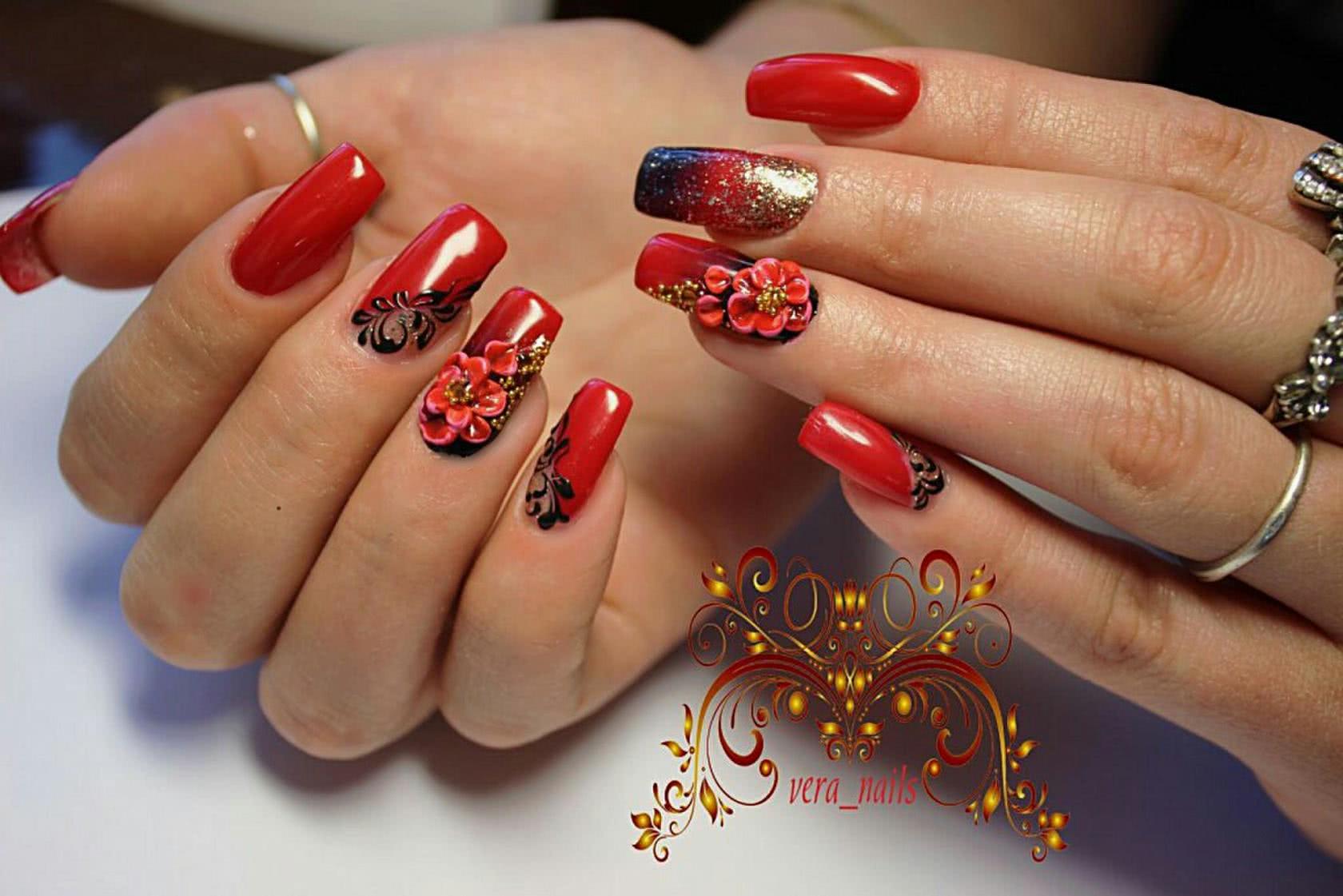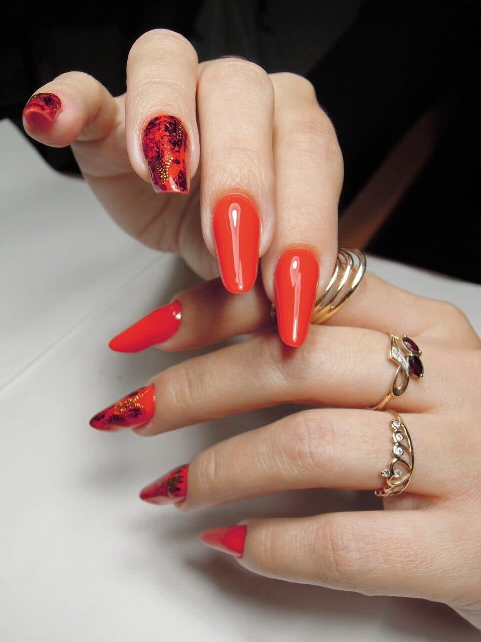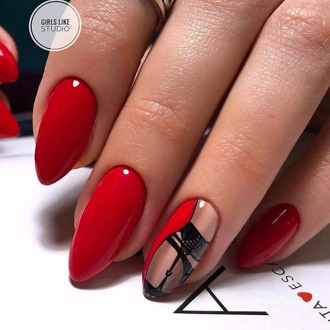 Маникюр красного цвета с дизайном 2020: актуальные идеи дизайна ногтей