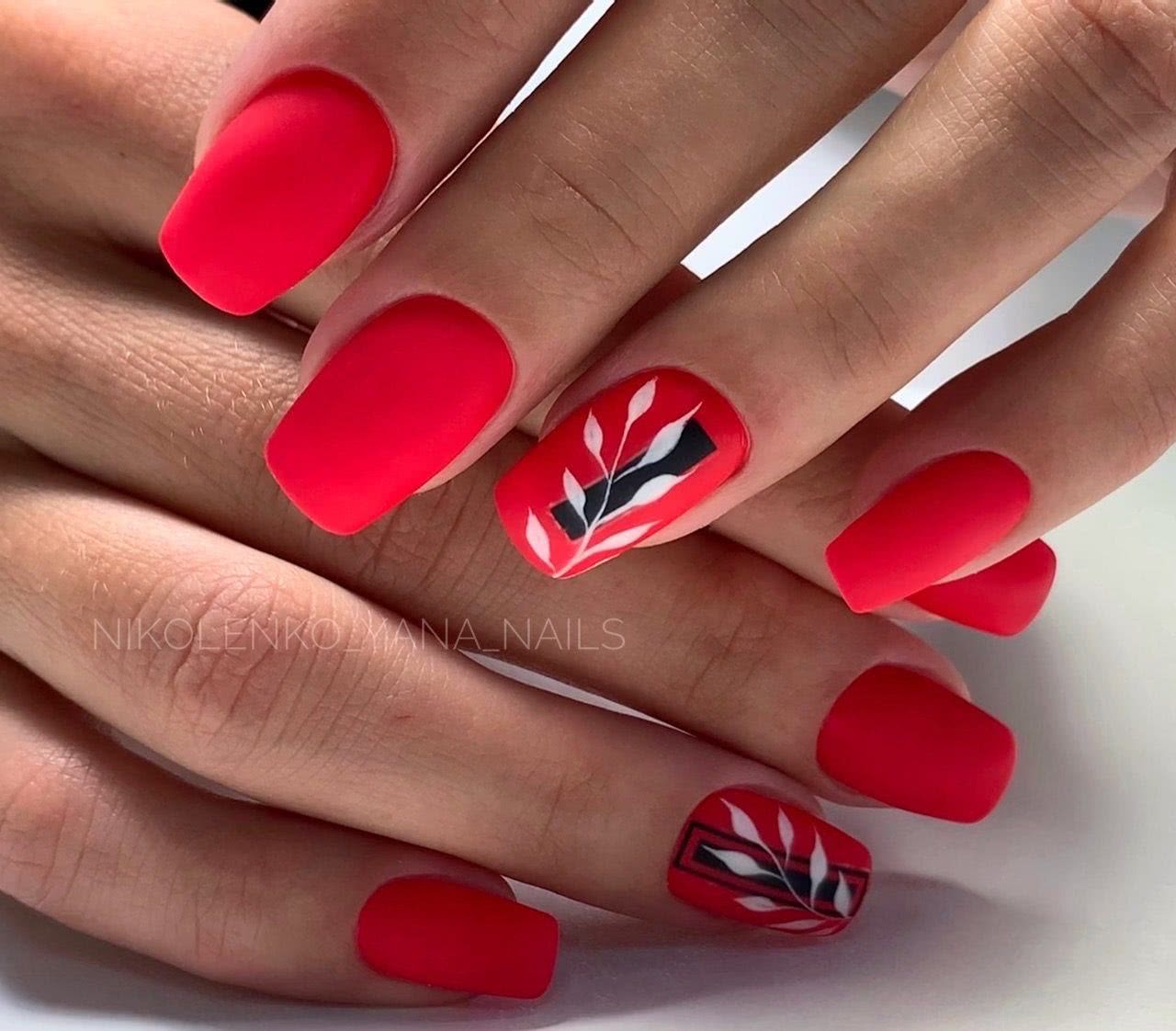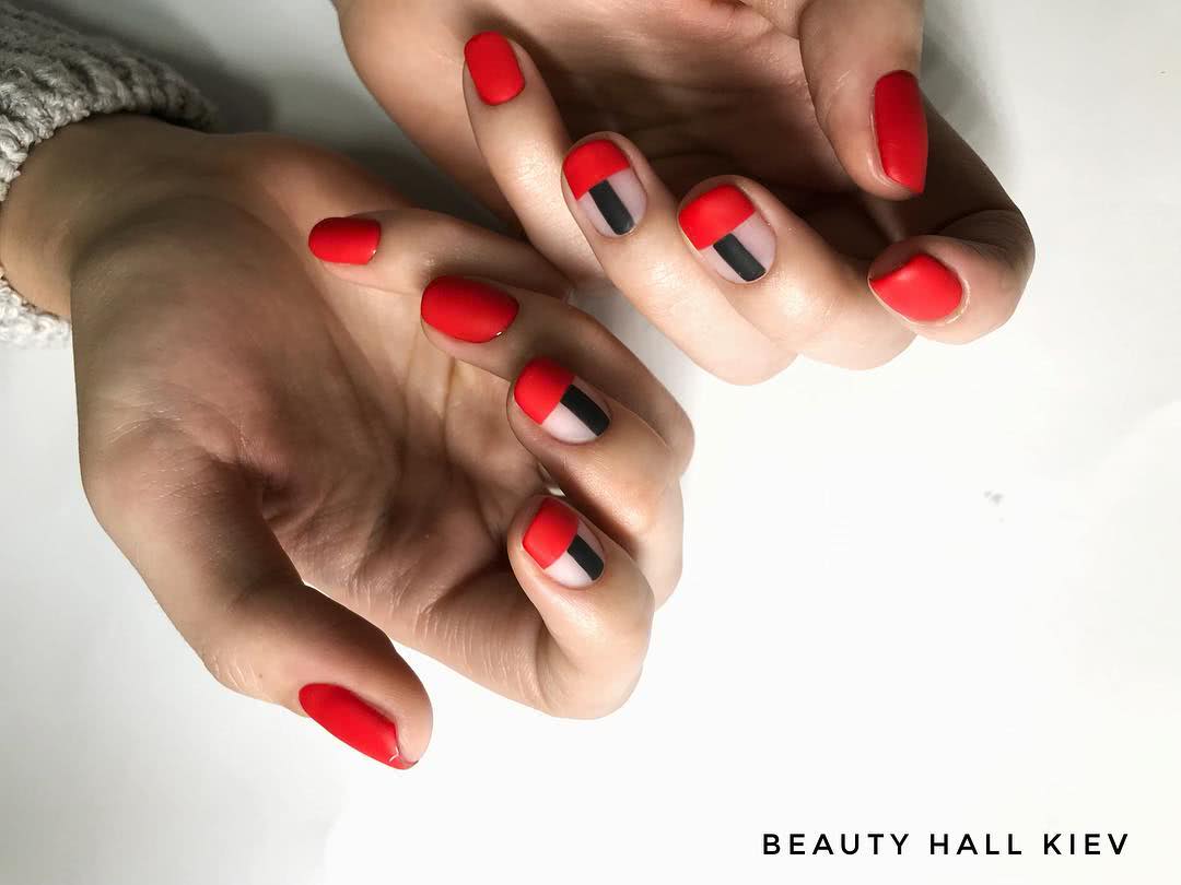 Матовый маникюр в красных тонах 2019: