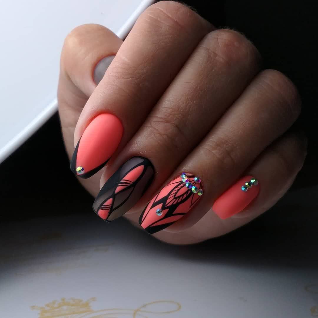 Независимо от выбранного цвета, матовость придает ноготкам шероховатости. Матовый коралловый смотрится благородно и дорого. Он гармонично вольется в вечерний праздничный образ.