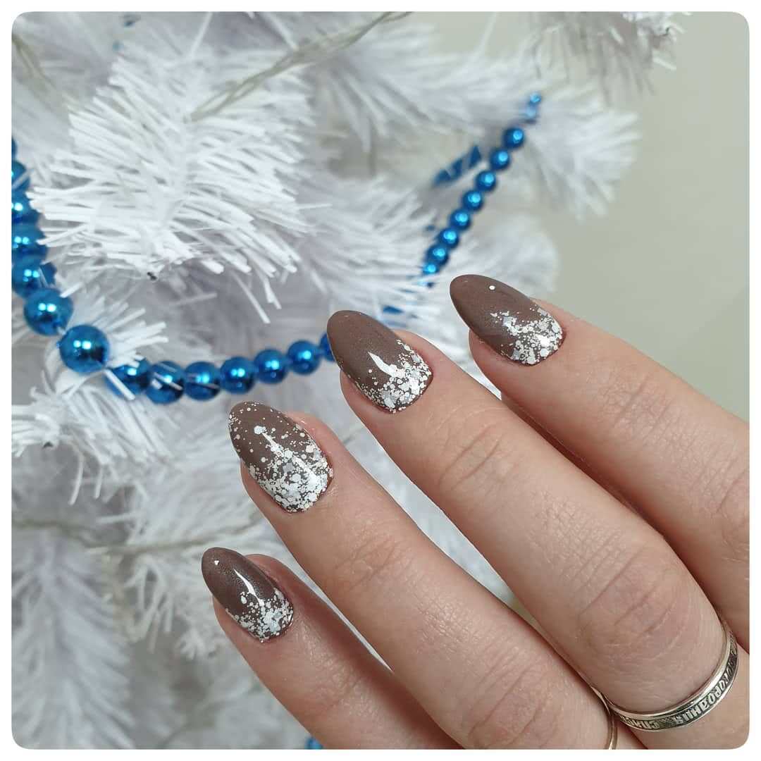 Популярные новогодние дизайны ногтей гель-лаком и блестками