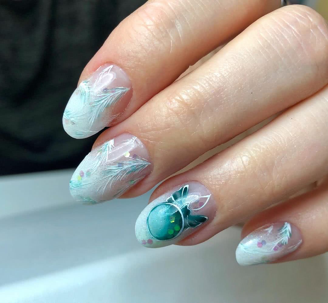 Зеленые оттенки лаков — традиционный цвет праздничного новогоднего сезона. Зеленый цвет прекрасно смотрится с новогодним дизайном ногтей в 2022 году, он хорошо сочетается с белым, красным и нюдовой палитрой лаков, а также разными оттенками блесток.