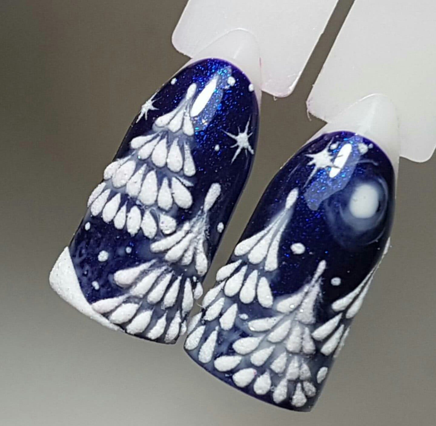 Новогодний маникюр 2021: идеи вечернего маникюра в синих тонах, фото