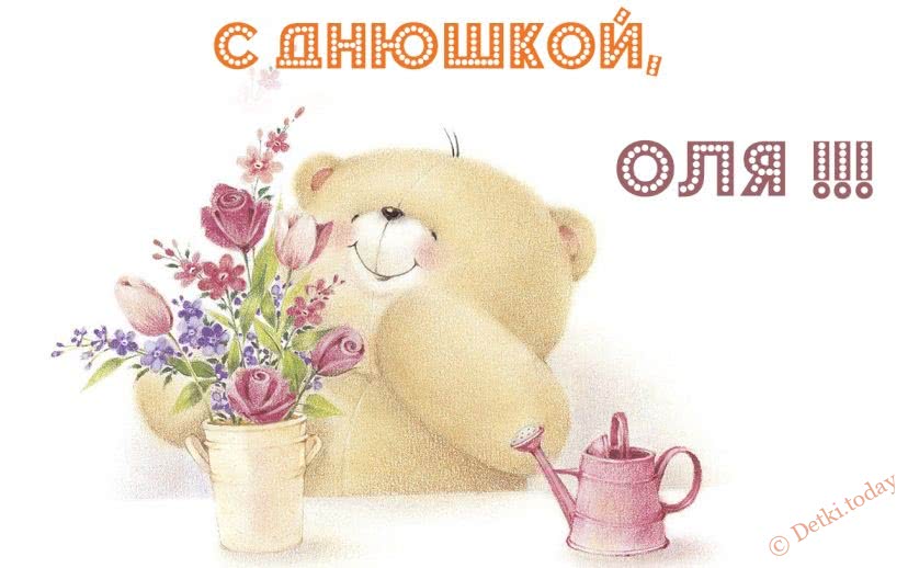С днем рожденья Олю поздравляем! В этот день с любовью скажем ей: Счастья, радости, здоровья мы желаем, Никогда не забывай своих друзей!
