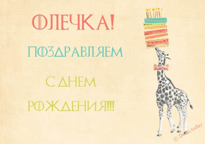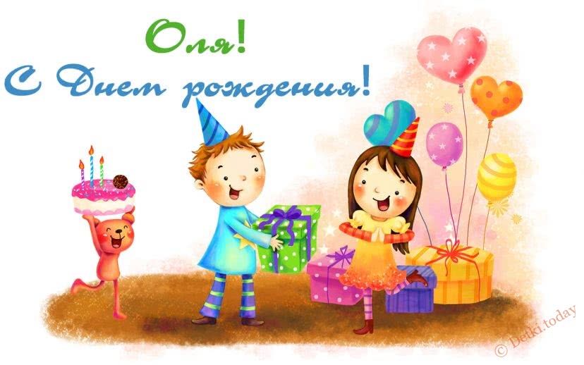 Одну из этих открыток вы также можете выбрать для маленькой девочки Оли. Вряд ли у нее есть своя страница в социальной сети. Но есть другой вариант – бесплатно скачать прикольные картинки с нарисованными в детском стиле зверушками, тортиками и воздушными шарами, распечатать их на цветном принтере и использовать для украшения комнаты именинницы. А подобрав несколько открыток в одном стиле, у вас получится оформить для малышки Олечки праздничную фотозону.