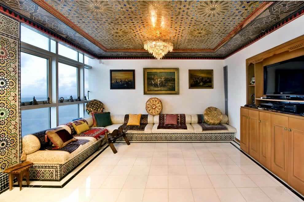Комната, оформленная в арабском стиле, должна быть наполнена уютом, покоем и умиротворением. При ее преобразовании стоит ориентироваться на традиции мусульманского Востока, которые не предполагают изображения лиц. Поэтому в арабских интерьерах не должно быть места живописи и скульптуры. А вот рисунки геометрических форм и различных орнаментов, призванные украсить стены и потолки, вполне приветствуются.