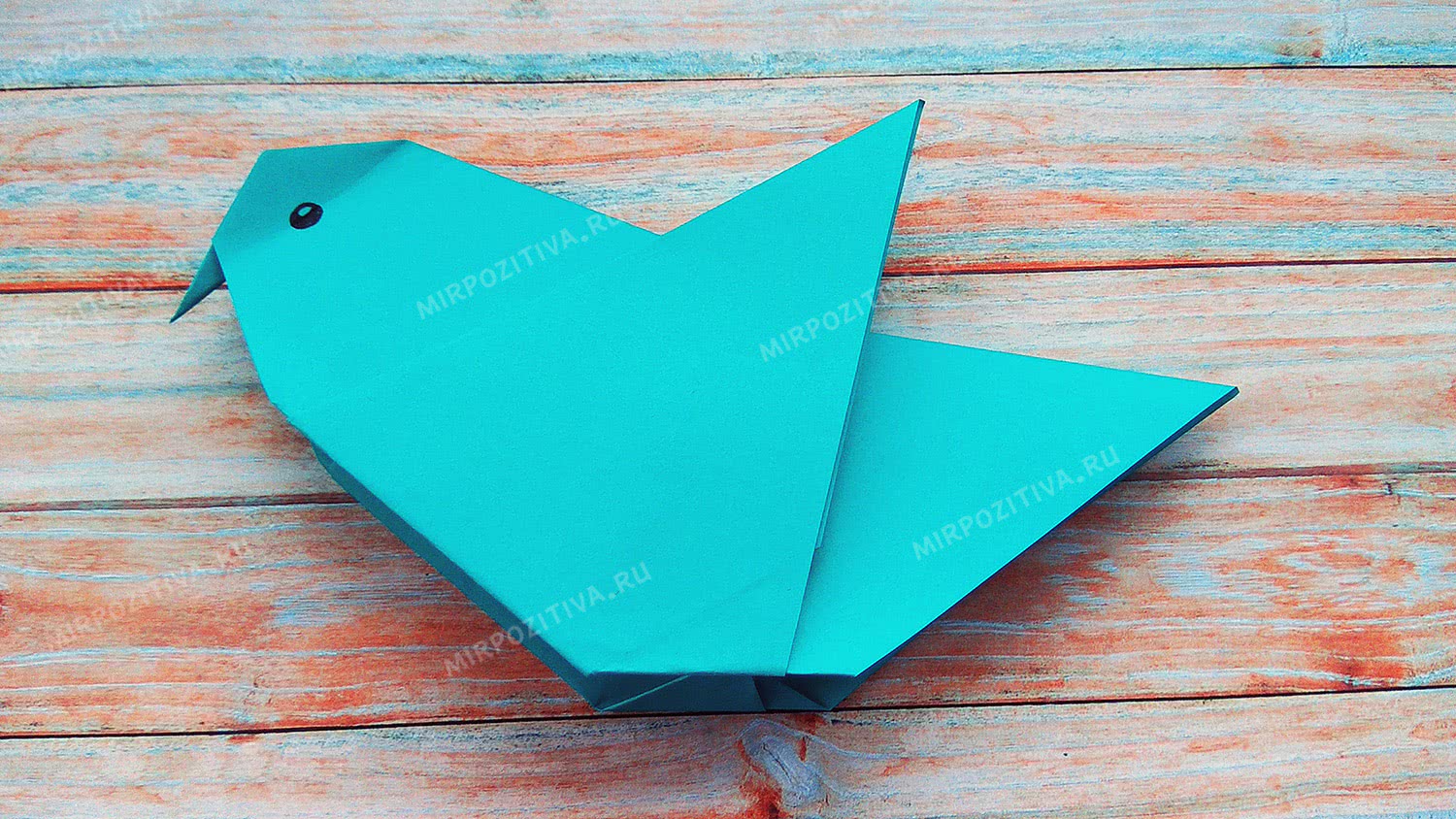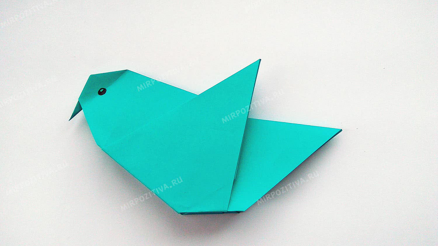 Шаг 16. Фигурка птицы оригами собрана. Клей не понадобится, если вы хорошо заутюжите все изгибы. Мастер-класс завершен.