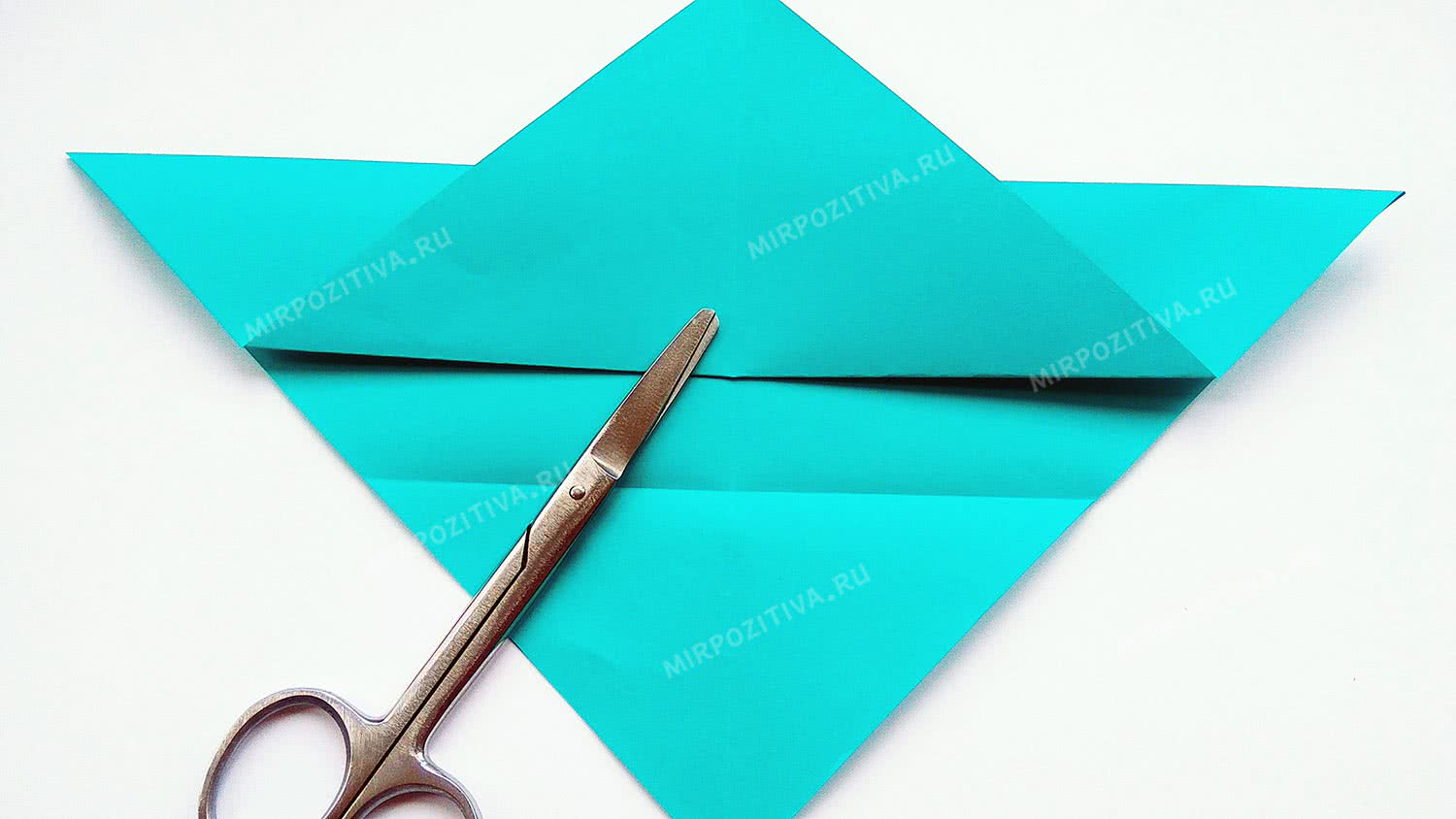 Сгибаем пополам. Заготовка имеет форму равнобедренного треугольника (фото 6).