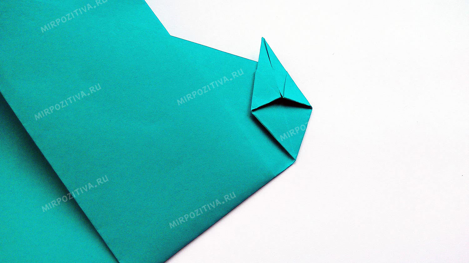 Шаг 11. Затем таким же образом согните второй угол, но в противоположную сторону.
