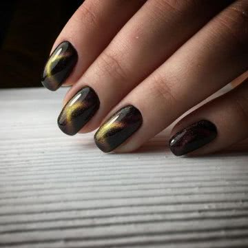 - С золотым декором. Золотой рисунок будет гармонично смотреться на ногтях любого цвета, выполненных в любом стиле. Черная или темно-серая основа с золотыми полосками или стразами станет хитом осеннего сезона этого года;