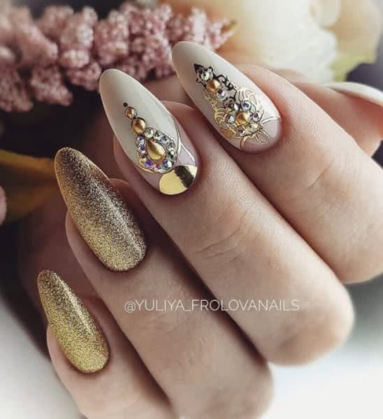 Трендовые новинки осеннего маникюра с блёстками и стразами