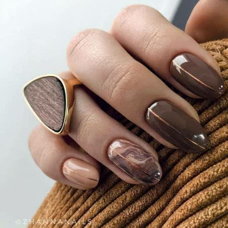- Оттенок горячего шоколада для ногтей будет замечательно смотреться с уютными шерстяными изделиями и отлично дополнит ваш образ этой осенью.