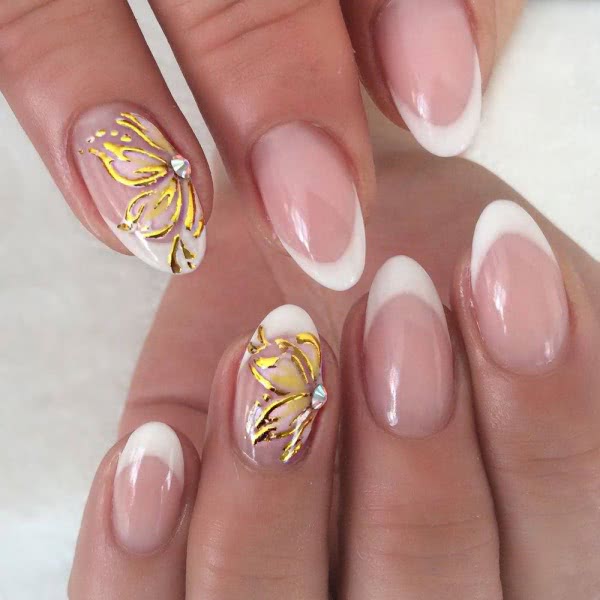 И с каждым видом фольги, вы можете получить абсолютно разные результаты. Золотая фольга отлично раскрывает всю красоту белого маникюра и дарит праздничное настроение.