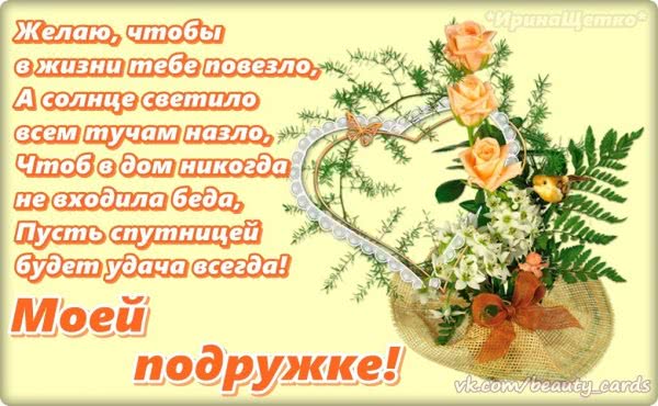 Дорогая подруга, пусть в день хороший и в ненастье, глаза пусть светятся твои от счастья!