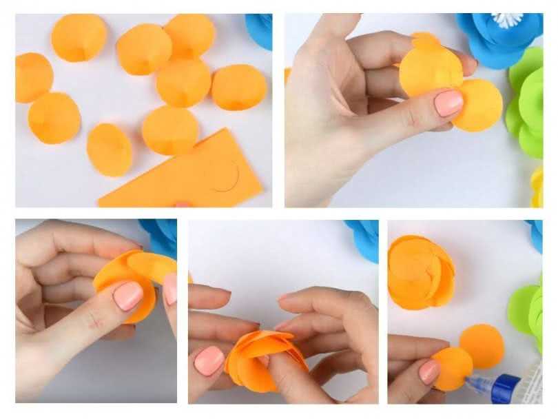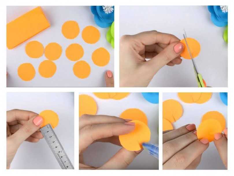 Из квадратиков со сторонами 7 см также делаем заготовку из цветка, только круг рисуем диаметром 2,6 см, а из квадратиков 6 см – круг диаметром 2,2 см. И из всех деталей собираем бутон.