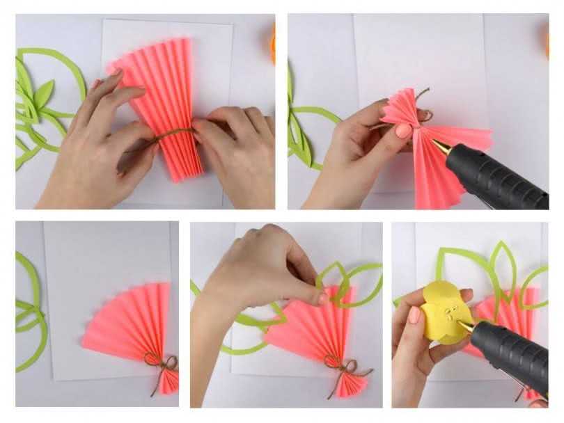 Используя этот приём, можно постараться смастерить открытку в форме вазы. Цветы также изготавливают своими руками из ватных дисков, фоамирана и прочих подручных средств.