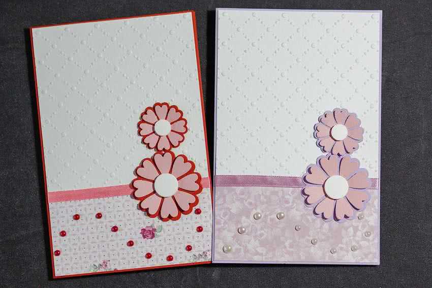 Края открытки можно украсить лентами, кружевом, бусинами и т. д.