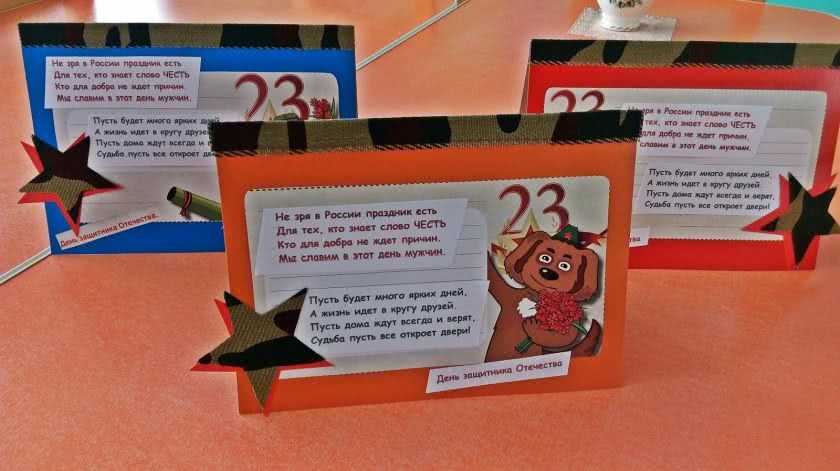 Таким простым и нехитрым способом можно сделать две симпатичные открытки. Делаем соответствующие надписи и пишем внутри поздравление.